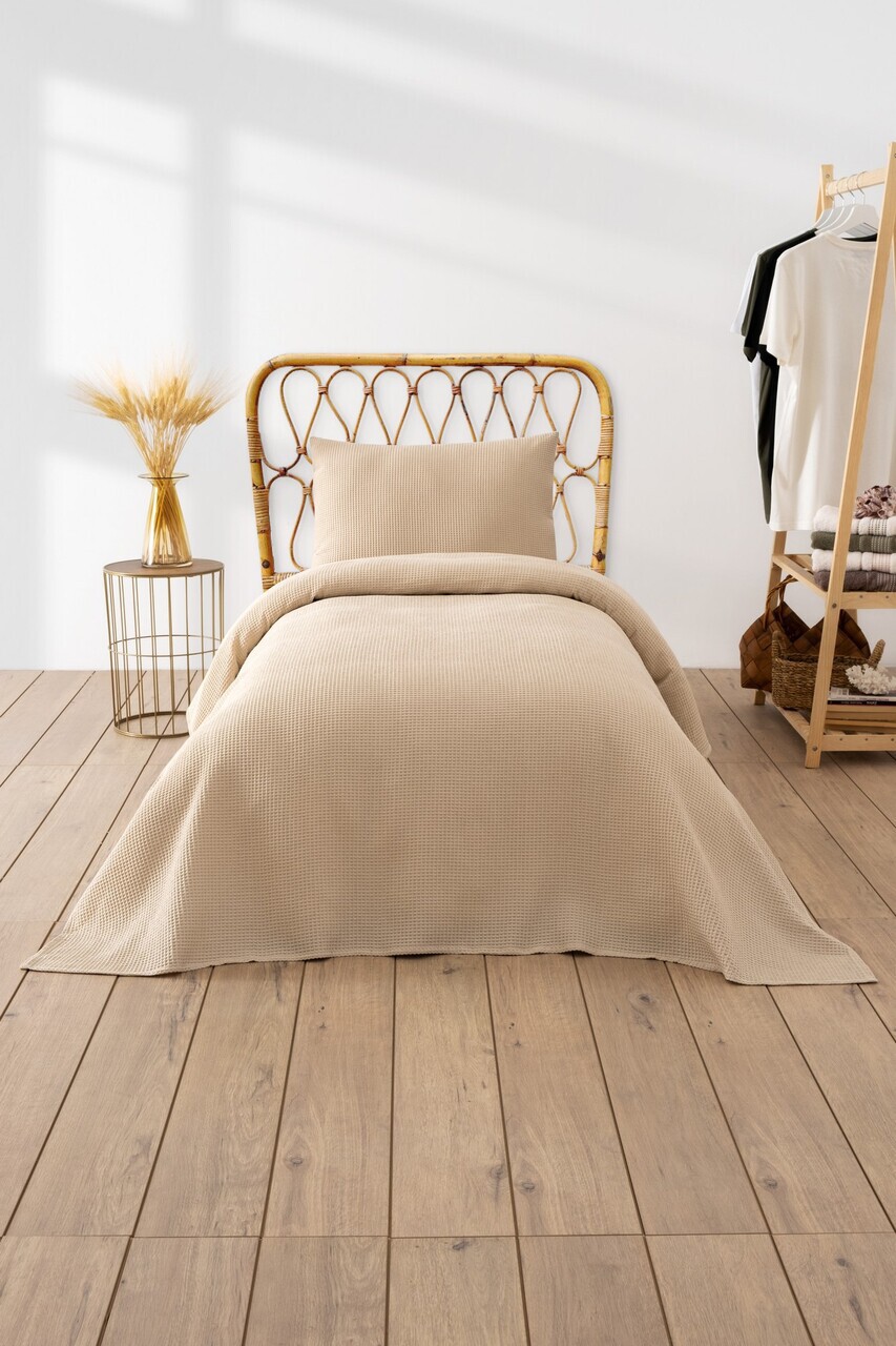 Cuvertura pique Single, Lessentiel Maison, Waffle, 65% bumbac/35% poliester, Bej
