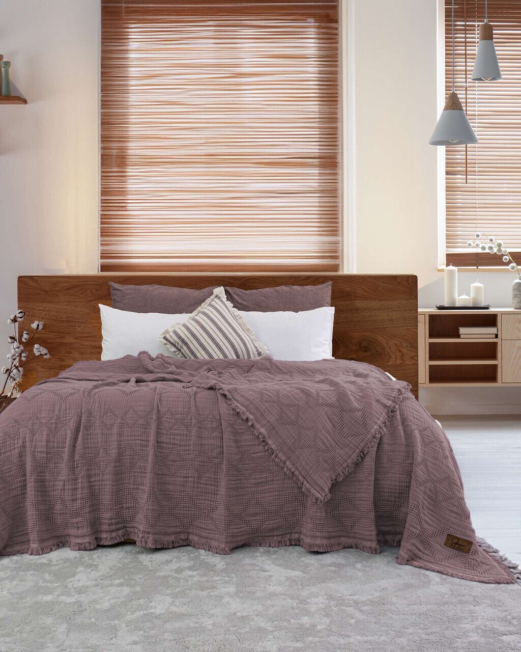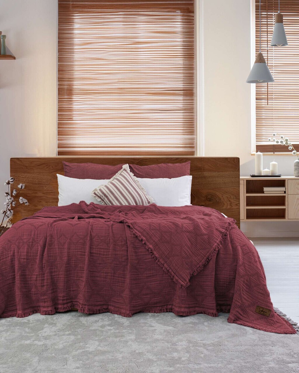 Cuvertura de pat, Lessentiel Maison, Elite, 65% bumbac/35% poliester, Rosu claret