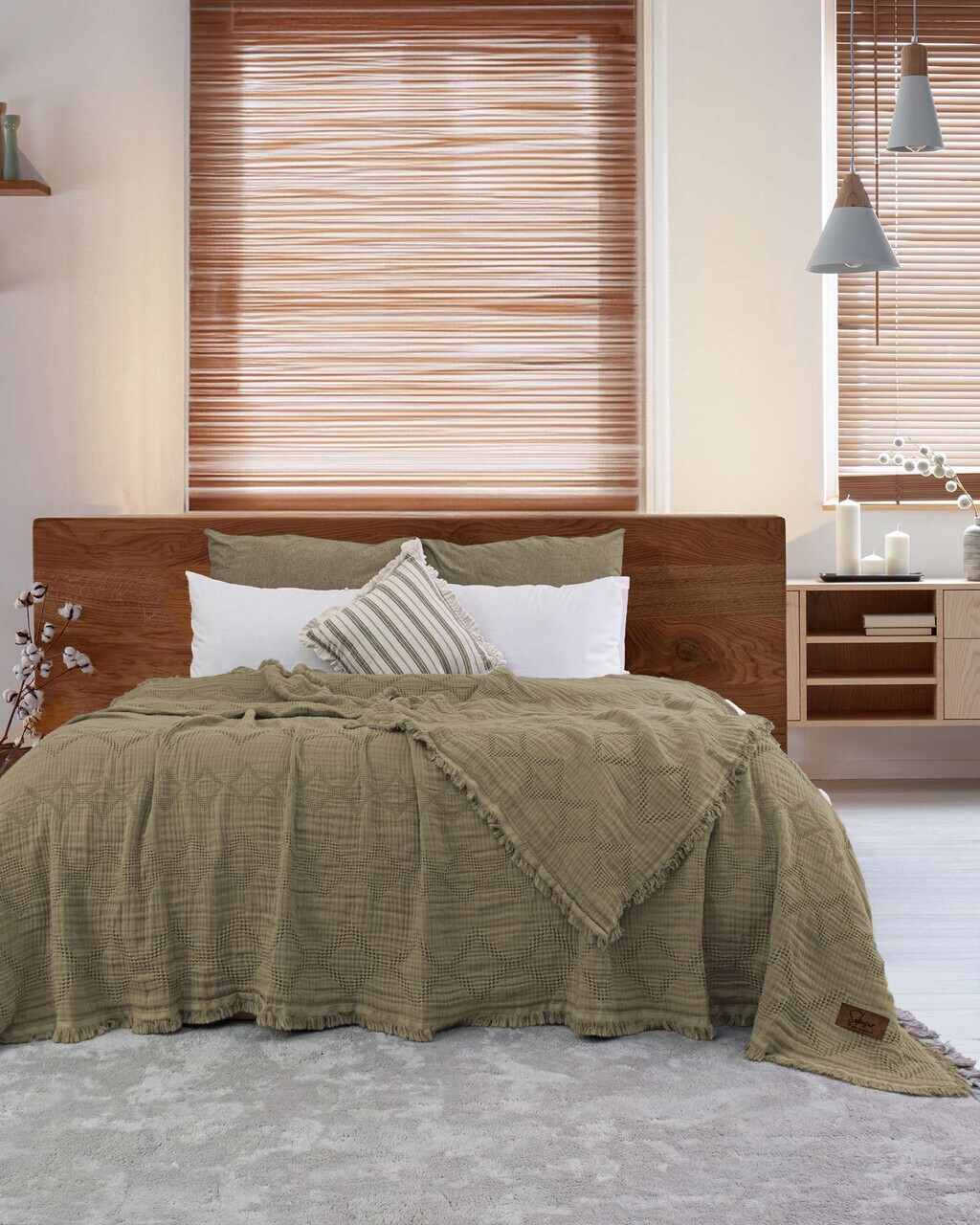 Cuvertura de pat, Lessentiel Maison, Alinda, 85% BUMBAC/15% POLIESTER, Verde