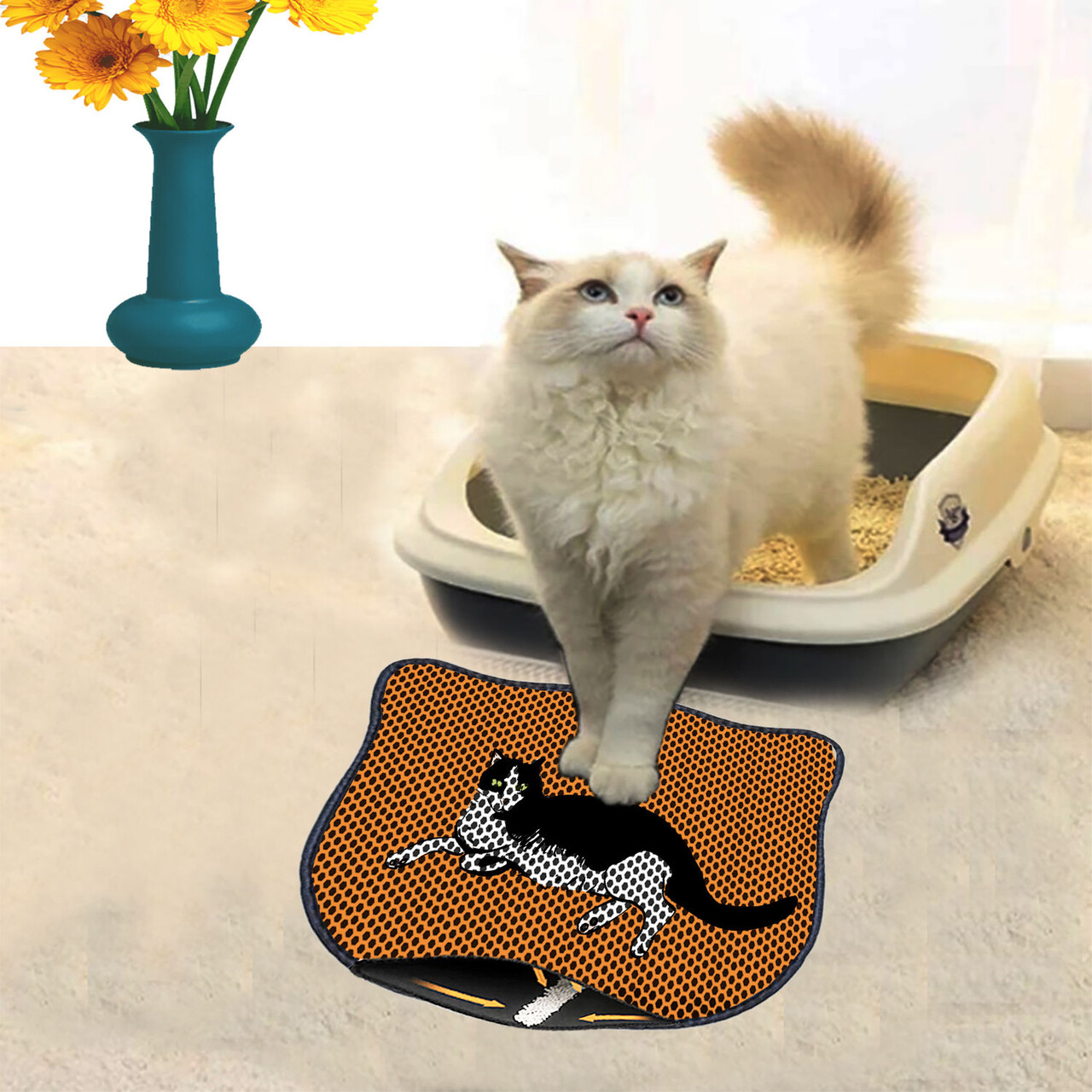 Covoras litiera pentru colectarea granulelor de nisip, Paws & Whiskers, Kdkafa0078, 50% PVC/50% poliester, Multicolor