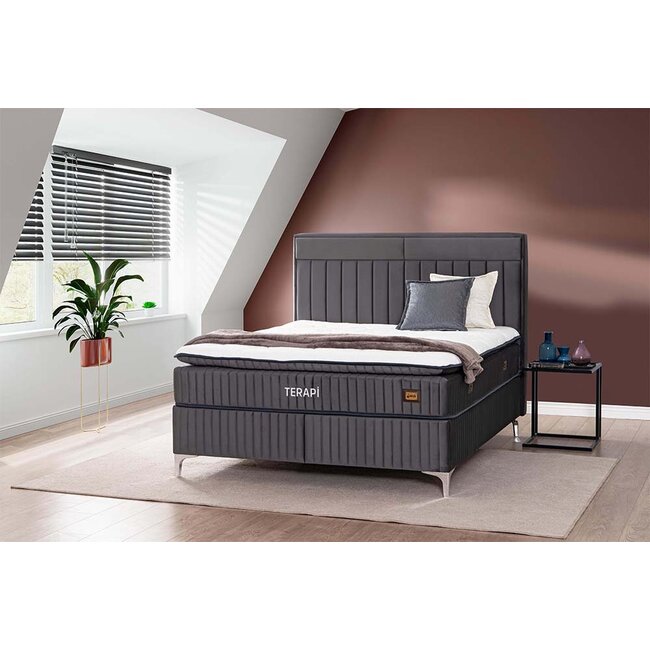 Pat + Saltea gratis Terry, micro-arcuri, 160x200 cm, gri