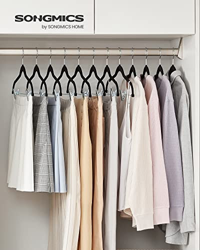 Set de 12 umerase de catifea ajustabile, Songmics, Negru-Argintiu, 42.5x0.6x23.5 cm