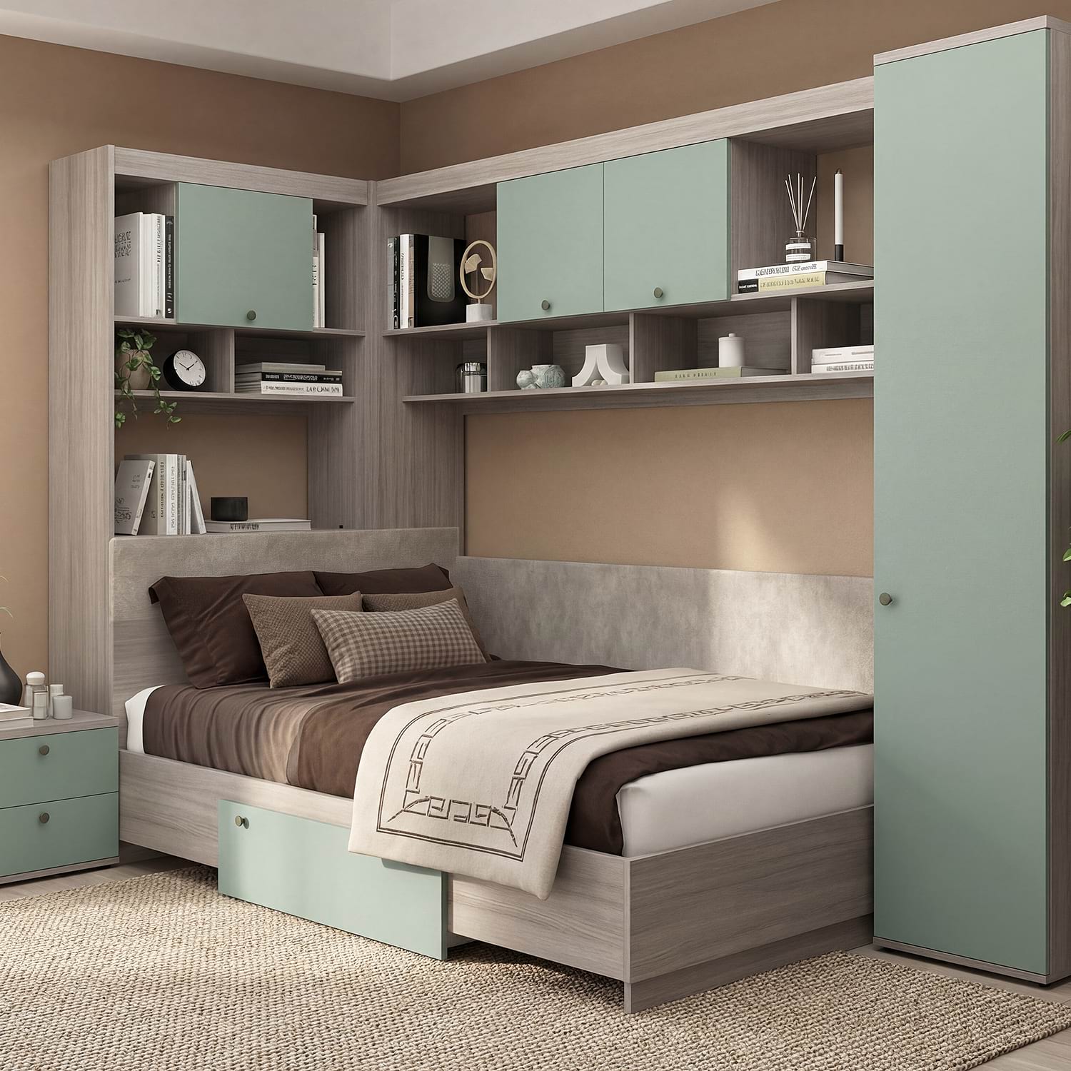 Dormitor colt AMBRO 8, Oak, Verde Eucalipt