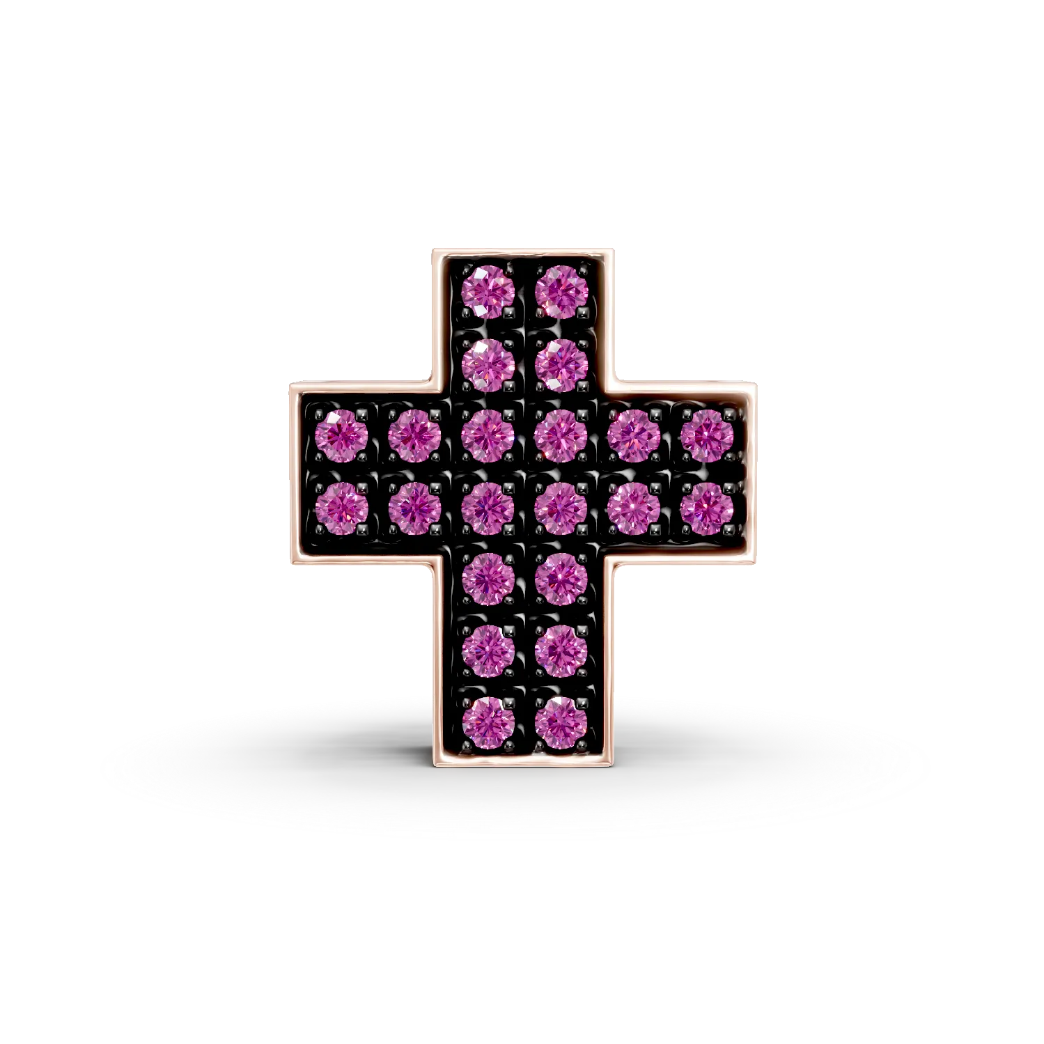 Pandantiv cruce din aur roz cu rubine de 0.17ct