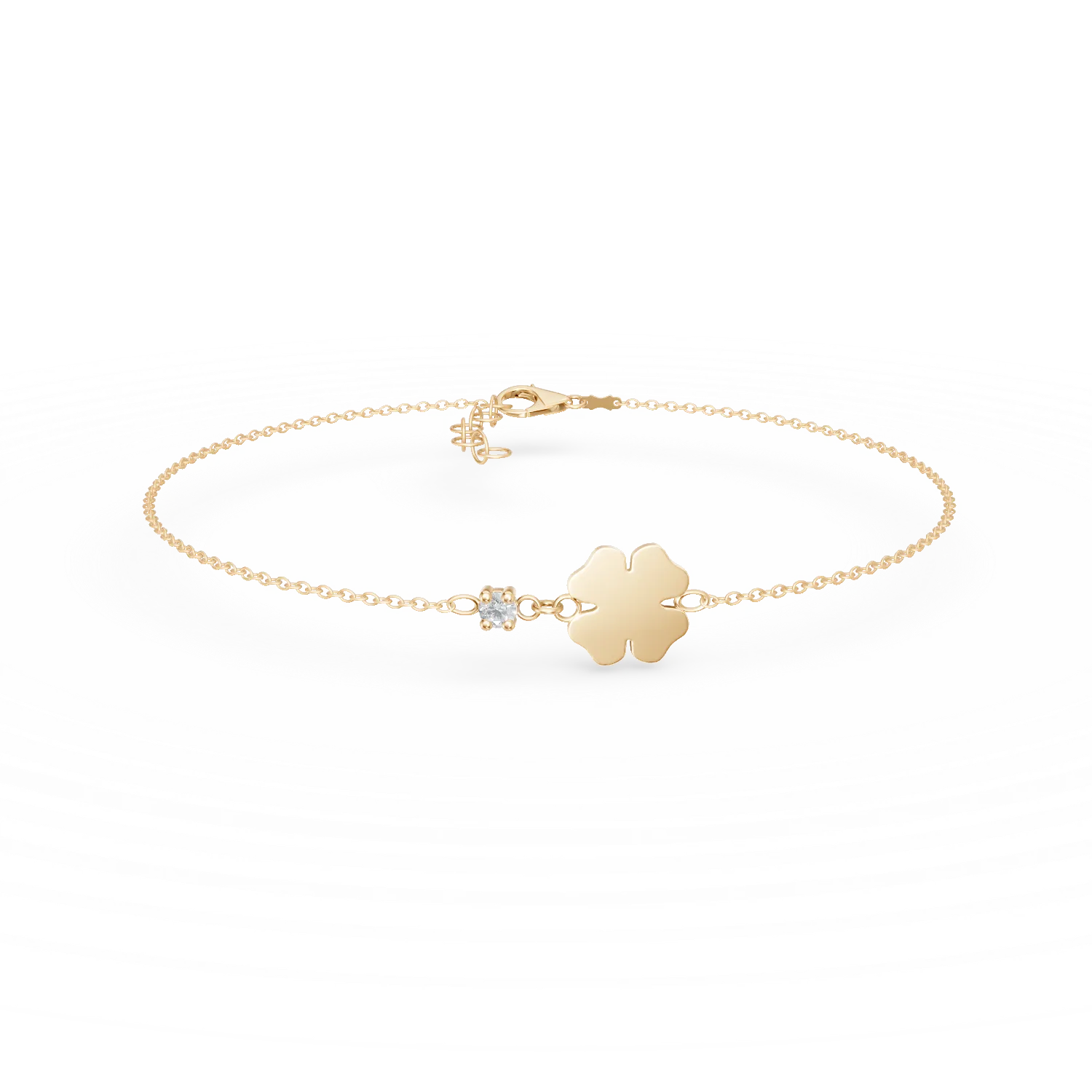 Bratara pentru copii cu trifoi din aur alb cu diamant de 0.02ct
