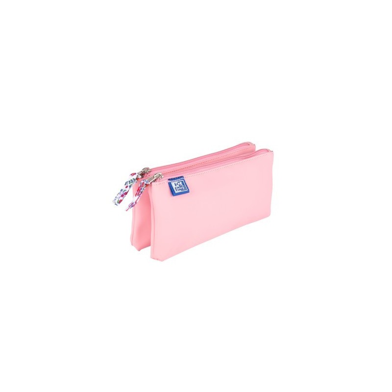 Penar Oxford 2 Zip Floral Pastel, Tip Etui Dublu, 2 Fermoare, Roz Deschis