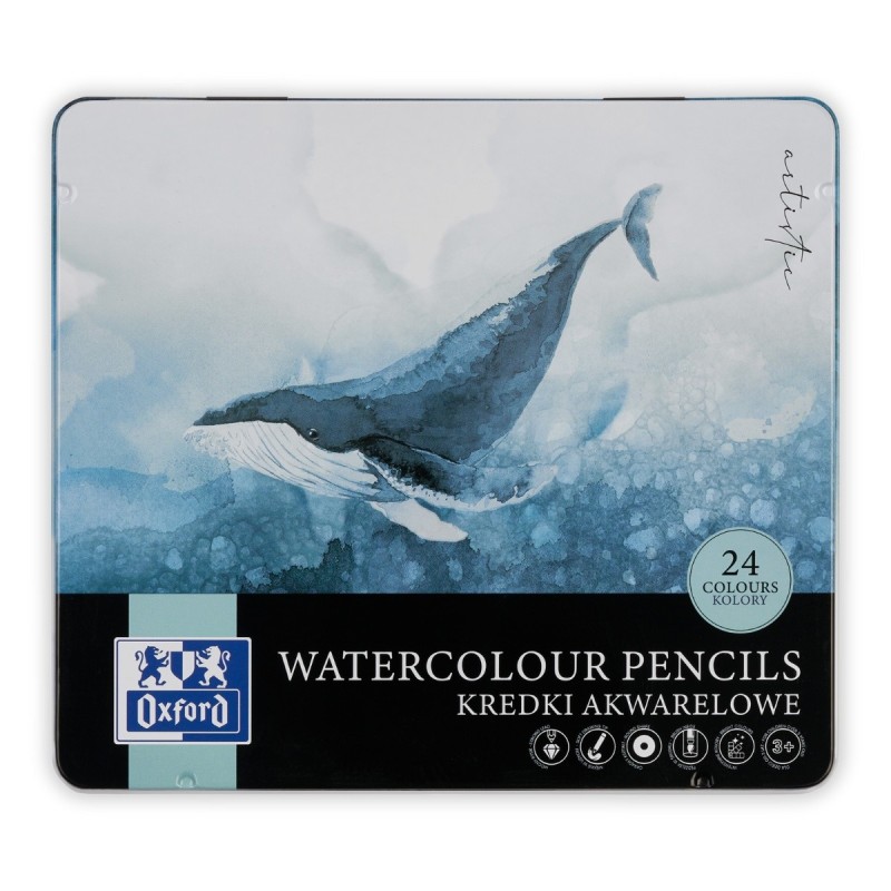 Creioane Colorate Oxford Watercolour, 24 Culori, in Cutie Metal, Colectia Artistic
