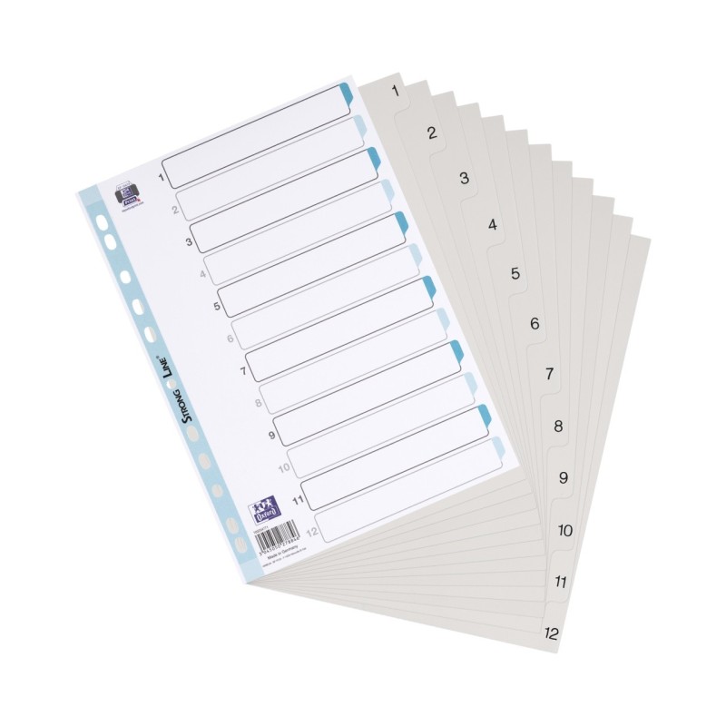 Index Plastic Numeric Oxford A4 1-12, 12 File, 11 Perforatii pt Indosariere + Cuprins, Alb