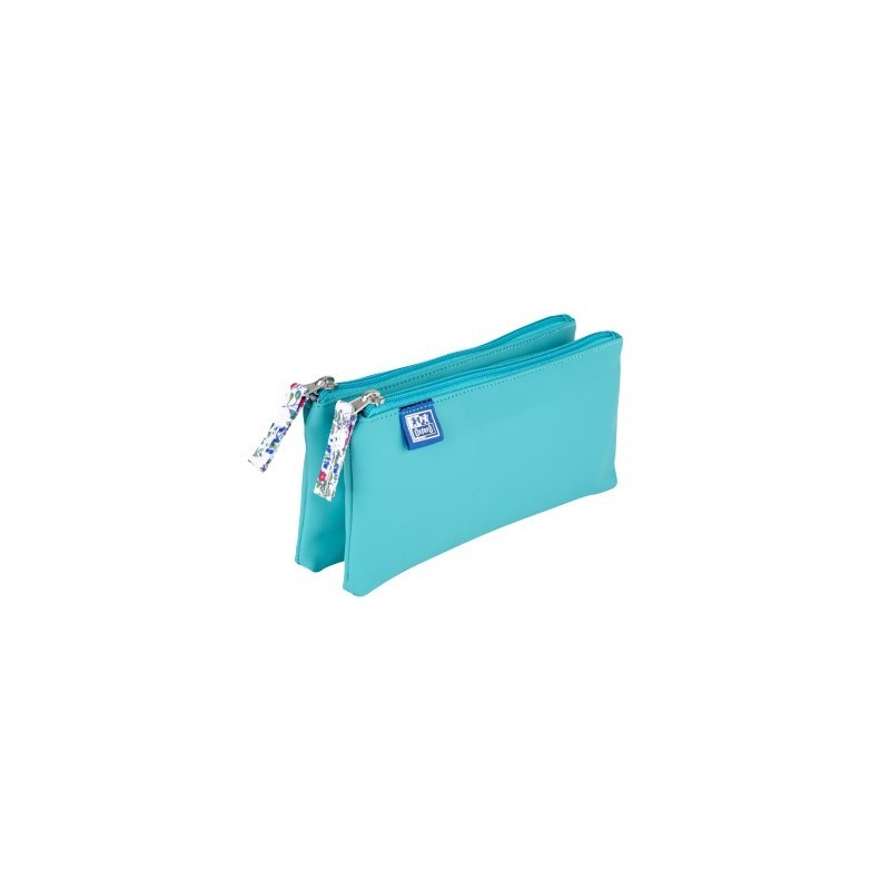 Penar Oxford 2 Zip Floral Pastel, Tip Etui Dublu, 2 Fermoare, Turcoaz