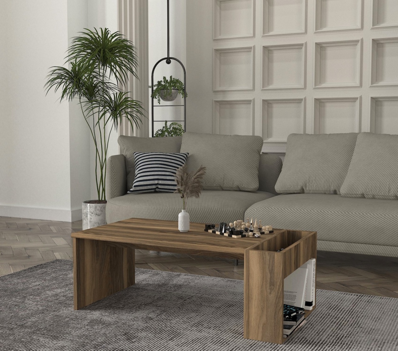 Măsuţă de cafea, Sabin Vnt, UnicUtil, Nuc, Lățime: 119 cm, Înălțime: 40 cm, Adâncime: 60 cm, 668NRD1114