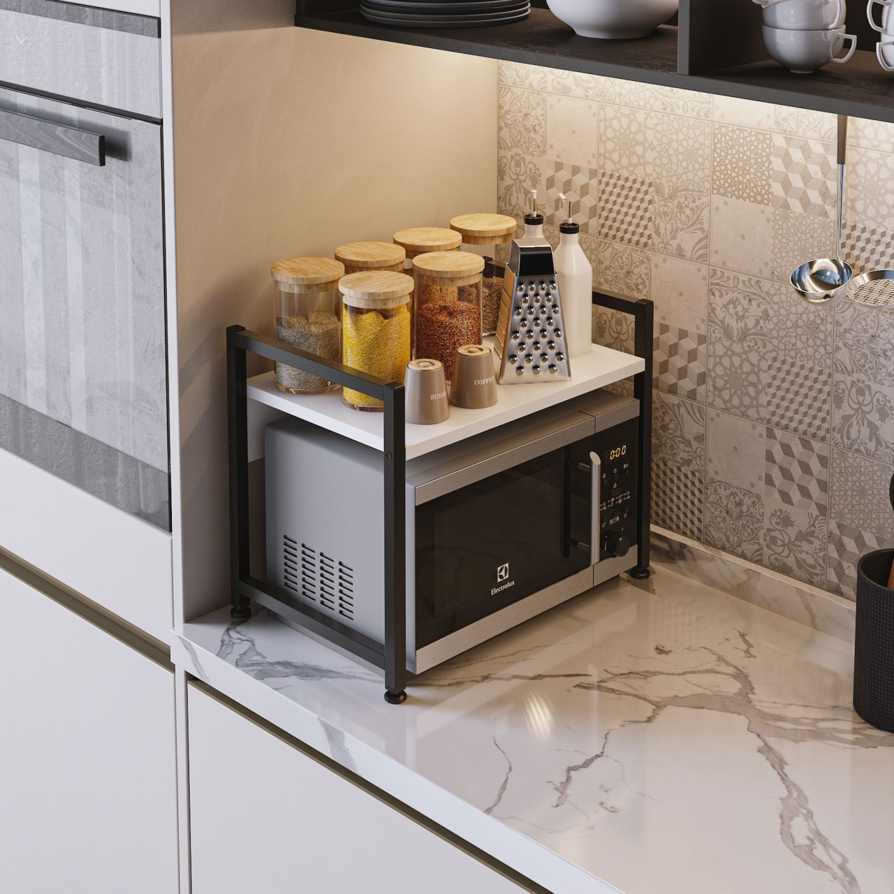 Raft de bucătărie, Malta White, UnicUtil, Alb-Negru, Lățime: 53 cm, Înălțime: 41 cm, Adâncime: 35 cm, 768ESL1311