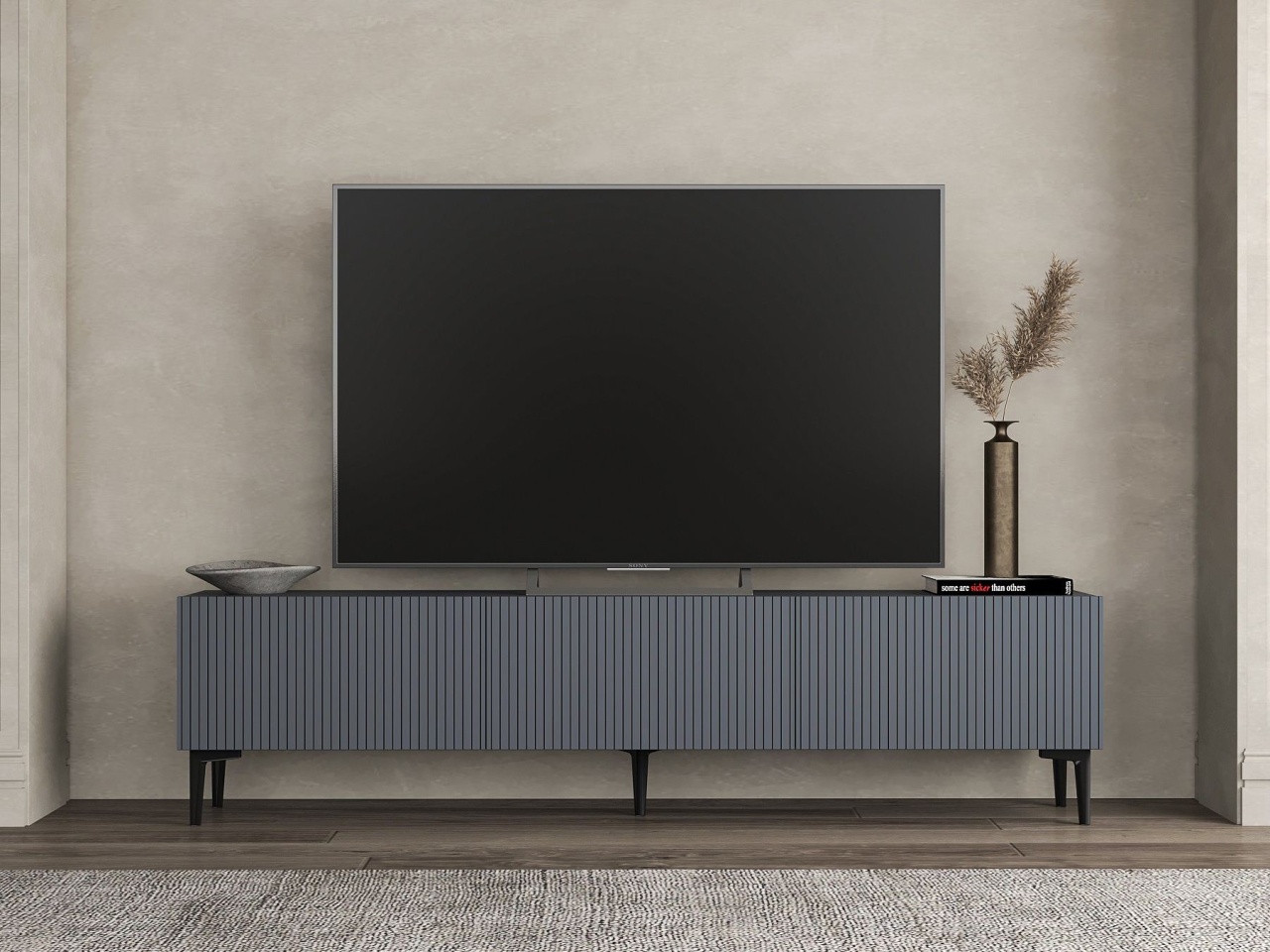 Comoda TV, Luxe Anthracite, UnicUtil, Antracit-Negru, Lățime: 180 cm, Adâncime: 30 cm, Înălțime: 50 cm, 618BLY1104
