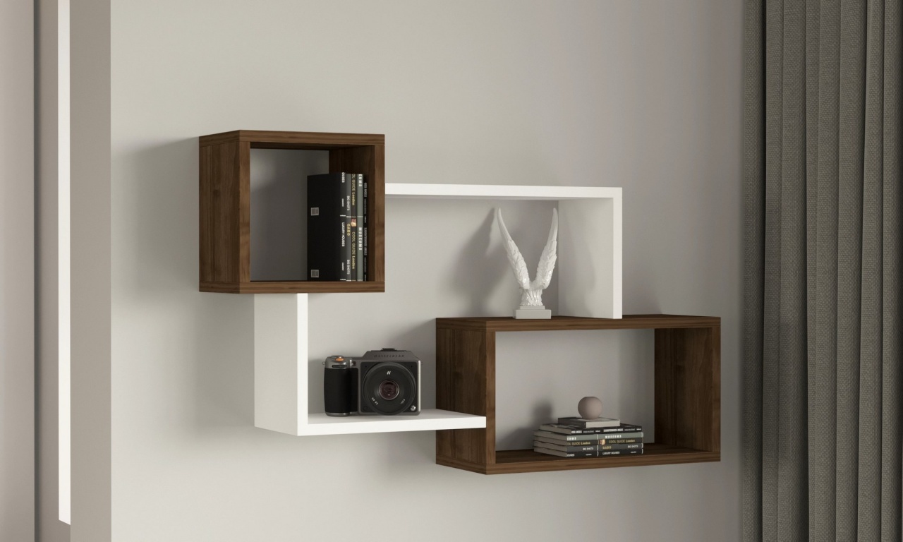 Raft de perete, Afro Walnut, UnicUtil, Alb-Nuc, Lățime: 90,6 cm, Înălțime: 51 cm, Adâncime: 22 cm, 835PUQ1673