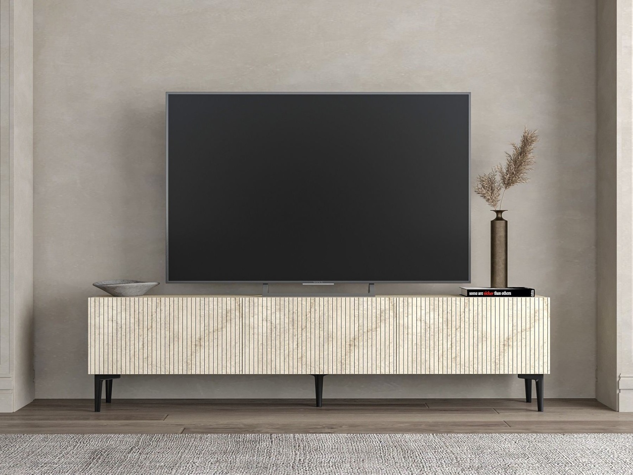 Comoda TV, Bohem Travertine, UnicUtil, Travertin-Negru, Lățime: 180 cm, Înălțime: 50 cm, Adâncime: 30 cm, 618BLY1268