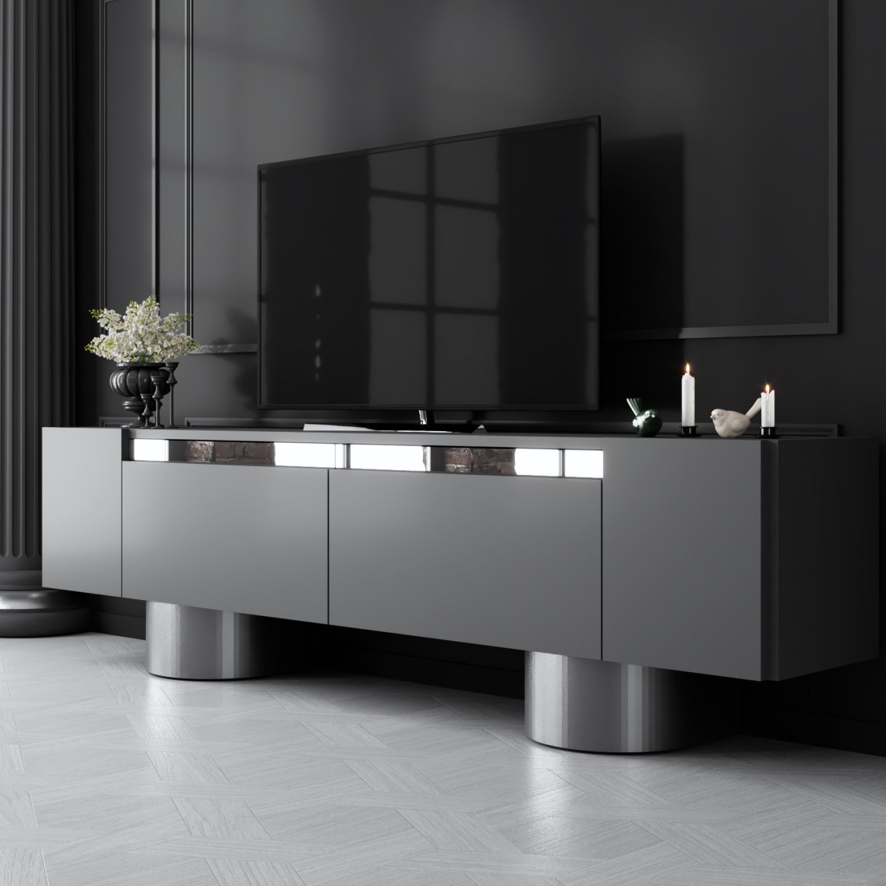 Unitate TV, Luxe Anthracite, UnicUtil, Antracit-Argint, Lățime: 180 cm, Adâncime: 30 cm, Înălțime: 50 cm, 618BLY1250