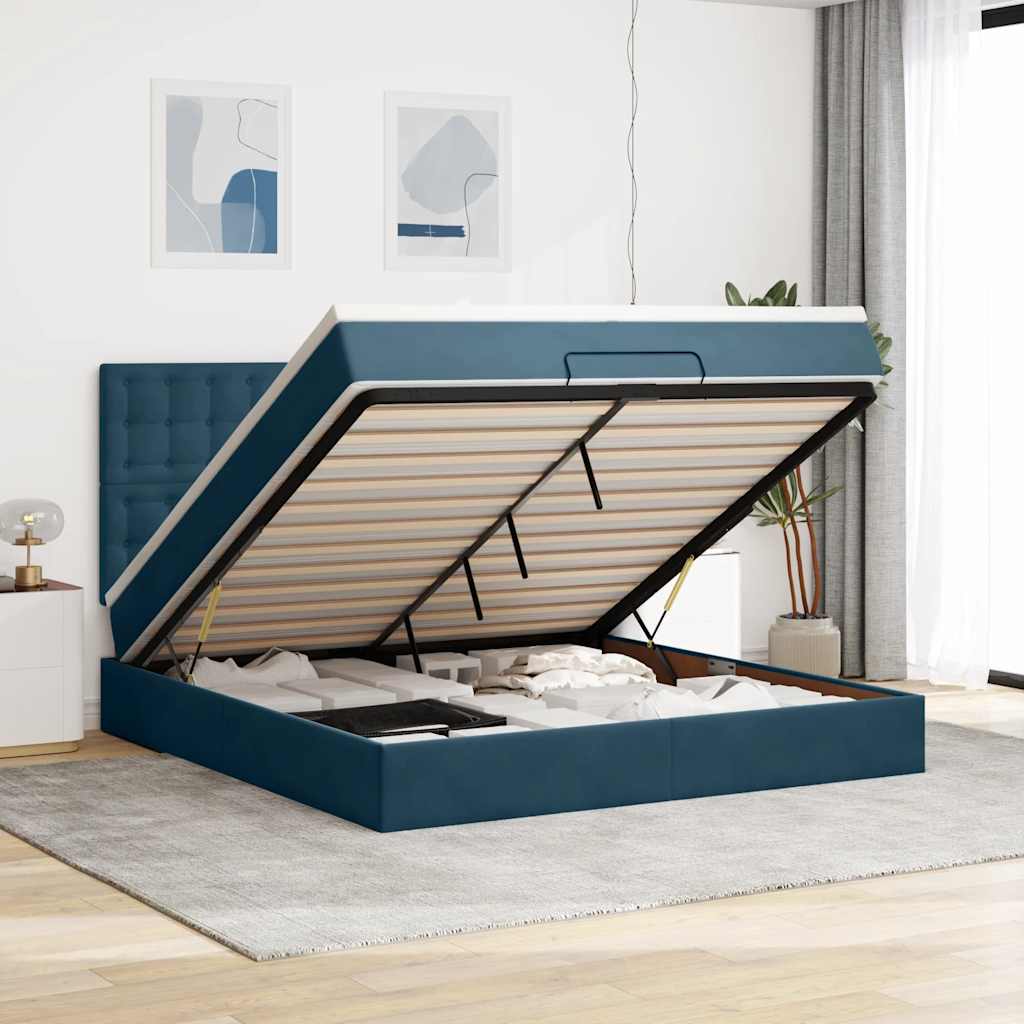 vidaXL Cadru pat otoman cu saltele Albastru închis 180x200cm catifea