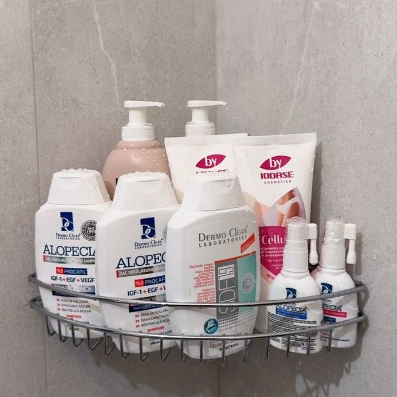 Etajeră baie fără găurire, cu adeziv – organizator duș cu suport săpun