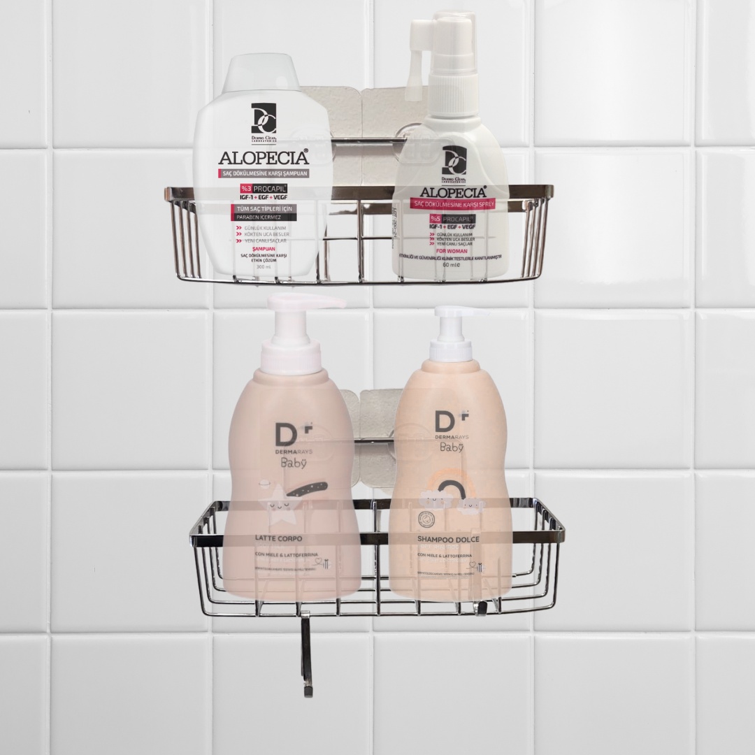Raft de baie, dreptunghiular, design modern, cromat, prindere prin lipire – montaj rapid in 5 minute fără găurire