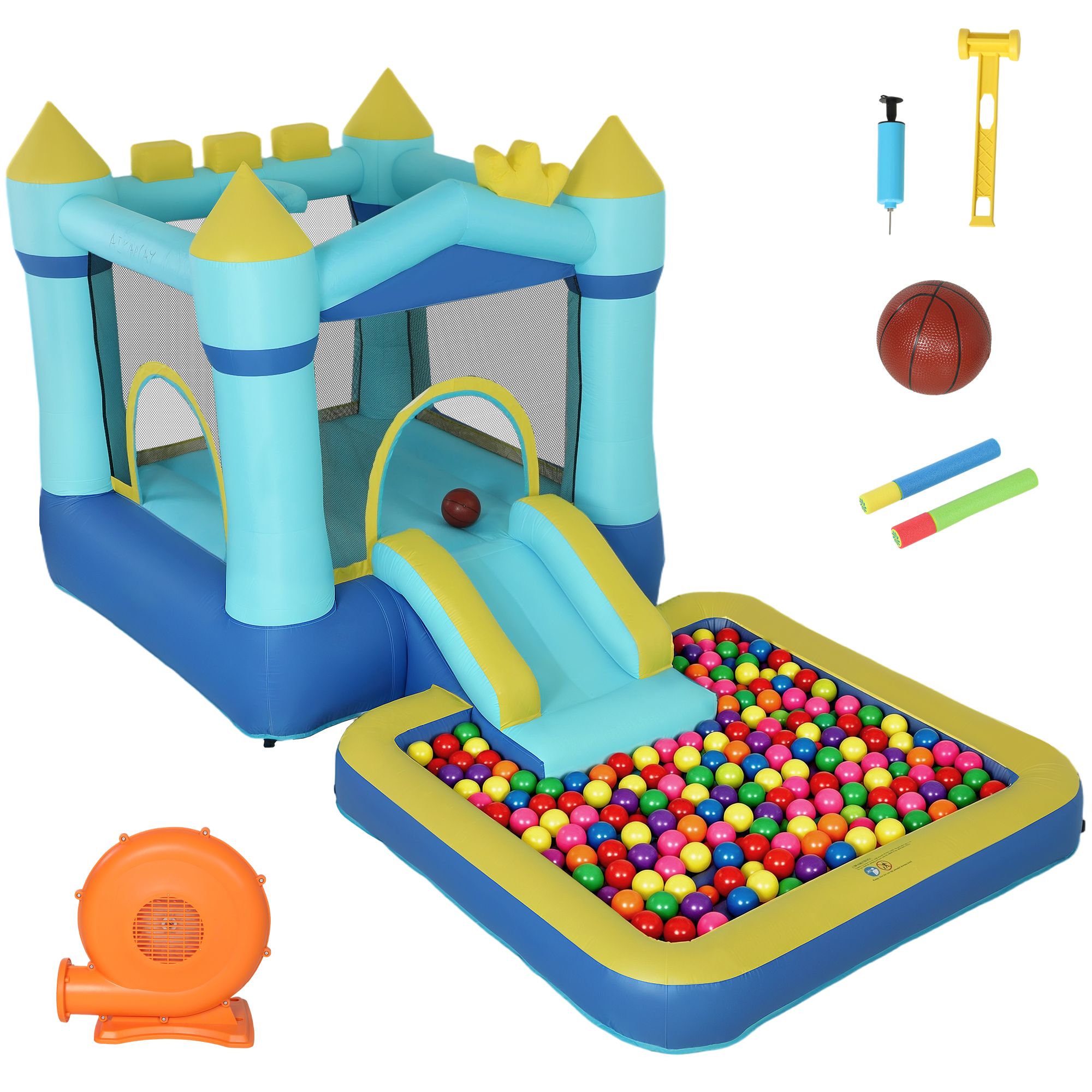 AIYAPLAY Centru de joacă gonflabil cu ventilator, tobogan, trambulină, piscină/bazin cu bile, pistol cu apă 364x173x182 cm Albastru | Aosom Romania