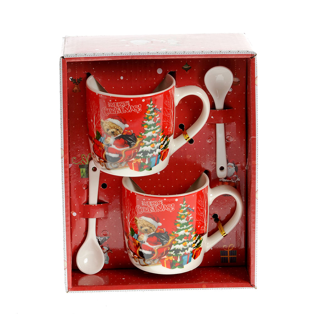Set 2 cani cu lingurite ceramice de Craciun 200 ml