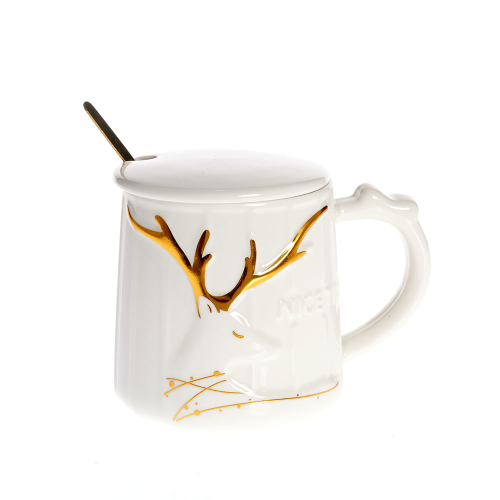 Cana alba cu lingurita imprimeu craciun 370 ml