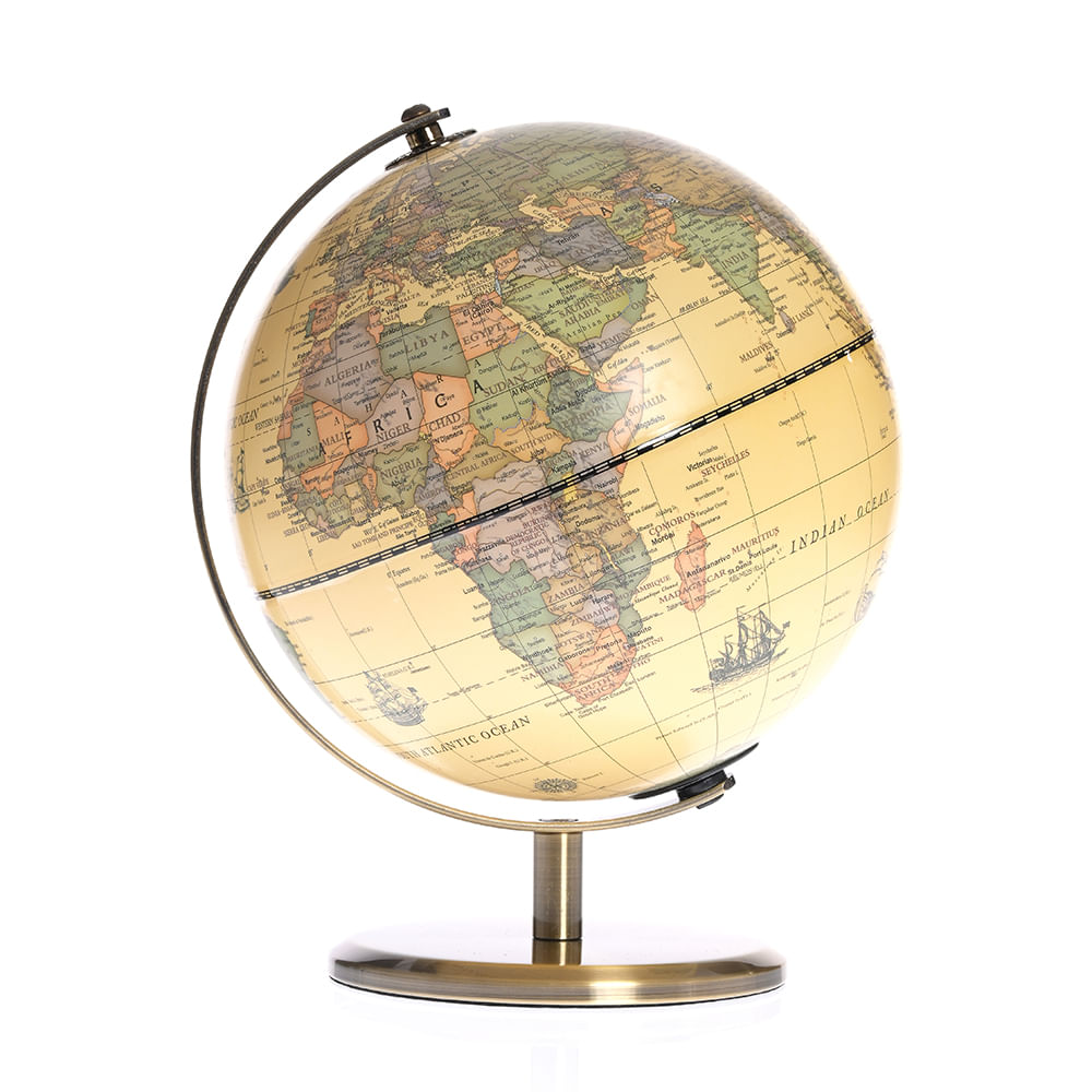 Glob pamantesc vintage cu suport metalic auriu 20 cm