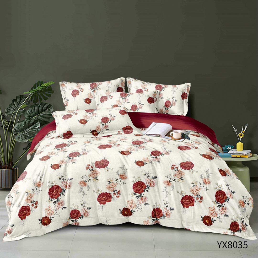 (OFERTA TRIO) Lenjerie pat 140x200cm, FINET, cu elastic, 4 piese, Crem, Rosu, Trandafiri