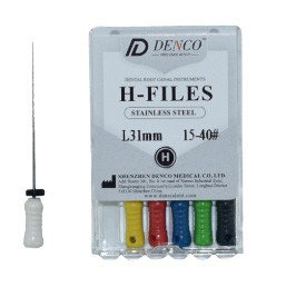Ace din oţel inoxidabil tip pilă, pentru preapararea canalelor. • Oţel inoxidabil• Secţiune pătrată pentru o rezistenţă crescută• Coduri de culori pentru o mai ușoară identificare Indicaţii:Tratament endo mecanic. Prezentare:• Cutie 6 buc.Lungime: 31 mmMărimi: 06, 08, 10, 15, 20, 25, 30, 35, 40, 15-40.