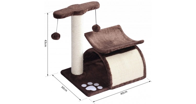 Ansamblu de joaca pentru pisici, 40 x 30 x 43 cm, D30-189 Ansamblu de joaca format dintr-un stalp cu suprafete infasurate in sisal, perfecte pentru ascutirea ghearelor pisicii dvs, un tunel, un culcus in forma de U si 2 mingiute Suprafete acoperite cu plus fac acest ansamblu un loc confortabil pentru pisici – ideal pentru joaca si relaxare Material: Pal, plus, sisal Dimensiuni generale: 40 x 30 x H 43 cm Dimensiunile stalpului: Ø 5,5 x H 40 cm Dimensiunile barei cu bile: L 30 cm Tunel 25 x 25 cm Greutate: 3,2 kg Greutate maxima suportata: 10 kg Culoare: maro