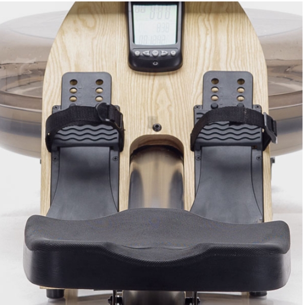 Fiecare aparat de vaslit WaterRower este realizat din lemn durabil provenit din paduri regenerabile, prelucrat si finisat manual in SUA. Aparatul de vaslit WaterRower A1 OAK este realizat din lemn de stejar, finisat cu ulei danez si dispune de o singura sina de aluminiu care produce un zgomot silentios si relaxant chiar si atunci cand vine vorba despe un antrenament extrem de intens. Pedalele bine pozitionate, manerul ergonomic si scaunul confortabil creeaza o experienta de vaslit deosebita. Datorita faptului ca are un impact redus asupra incheieturilor, posibilitatile de accidentare sunt reduse la minim. Patenta pentru WaterFlywheel simuleaza misarea dinamica a vaslitului. Rezistenta autoreglabila prin alegerea vitezei de vaslire, infinit variabila, potrivita pentru orice utilizator. Monitorul de tip LCD QuickStart afiseaza functii de baza: timp, distanta vaslita, calorii consumate, dar nu este compatibil cu dispozitivele de monitorizare a frecventei cardiace – prin urmare, acest rower nu permite antrenamentul cu programe de control al frecventei cardiace. Aparatul de vaslit lucreaza toate grupele musculare principale (84% din masa musculara) SE LIVREAZA IN DOUA PACHETE