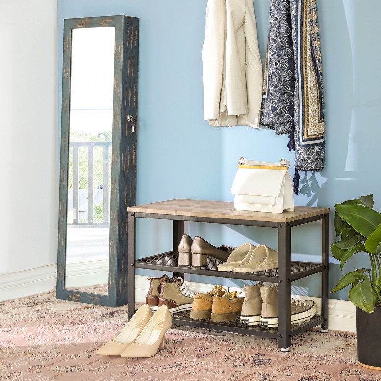 Specificații: - Culoare: Greige, Negru - Material: Plăci PAL, Oțel - Dimensiune produs: 73 x 30 x 45 cm (L x l x H) - Greutate produs: 8 kg - Max Capacitatea de încărcare statică a scaunului: 90 kg Conținutul pachetului: - 1 x bancă de pantofi - 1 x kit de accesorii - 1 x instrucțiuni (EN, DE, FR, ES, IT)