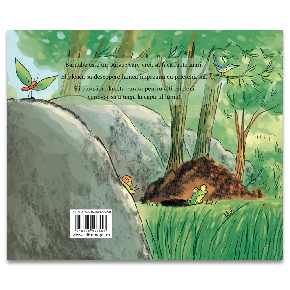 Barnabe este un bursuc care vrea să facă fapte mari. El pleacă să descopere lumea împreună cu prietenii săi. Să păstrăm planeta curată pentru alți prieteni care vor să ajungă la capătul lumii! Această carte conține o poveste minunată despre aventurile lui Barnabe și prietenii săi, încurajându-i pe copii să se alăture efortului de a menține o planetă curată pentru toate ființele care locuiesc aici. Prin fiecare pagină, cei mici sunt încurajați să se implice activ pentru a avea o planetă mai curată. Despre autor: Gilles Bizouerne este autor, are peste 30 de cărți pentru copii publicate în Franța. Locuiește la Paris. Béatrice Rodriguez a absolvit Școala de Arte Decorative din Strasbourg, Franța. Astăzi este o ilustratoare de succes, creând cărți pentru copii, precum și ilustrații pentru presă. Ea locuiește în Nevers, Franța. Caracteristici: Pagini:32 Mărimi: 21,5 x 16,5 Autor: Gilles Bizouerne Traducător: Anca Măgurean Copertă: Cartonată Numărul proiectului: 101059305 Project name: Literatura europeana pentru copii despre ecologie si mediu Project acronym: LECEM