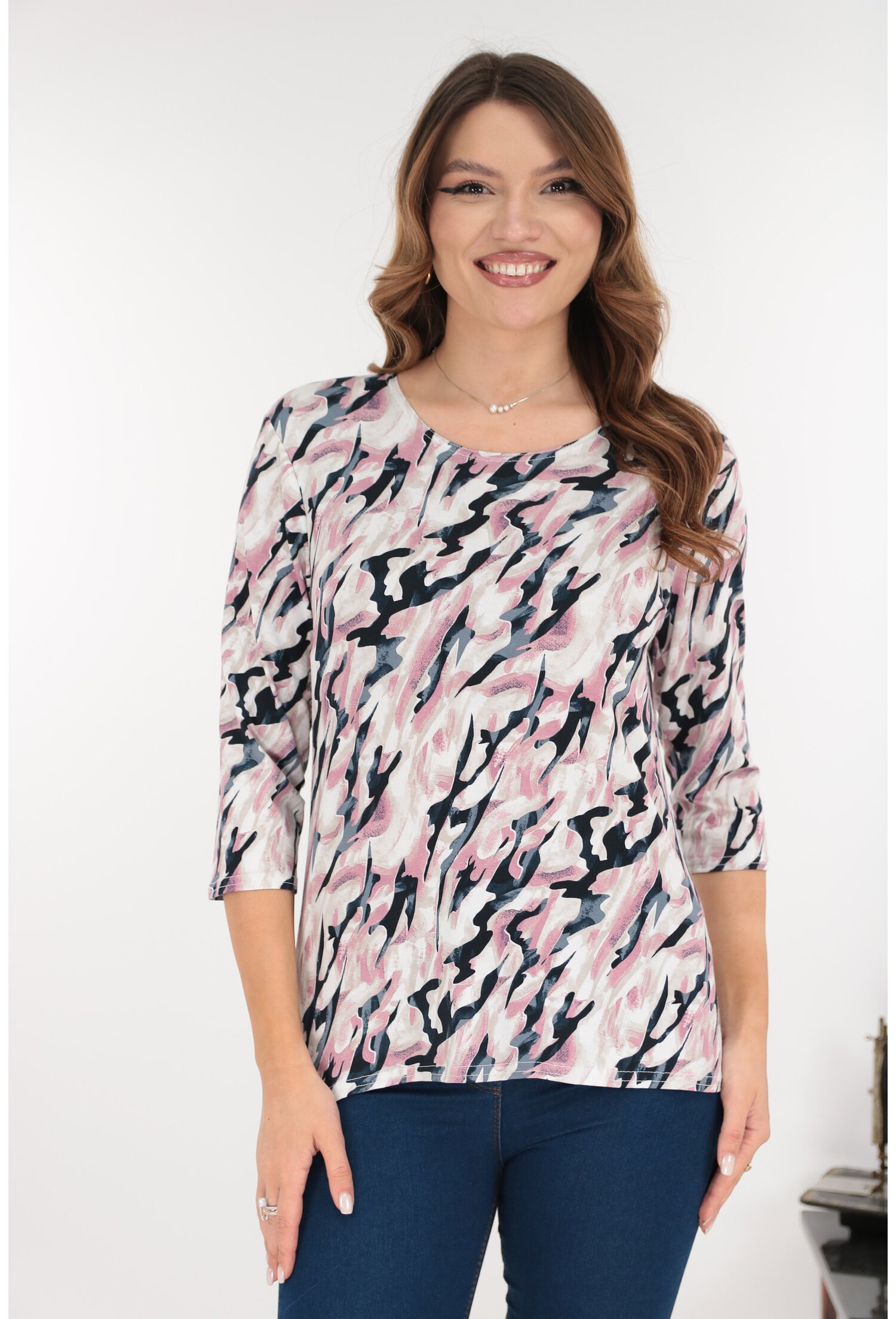 -Bluza eleganta alba cu print auriu -Confectionata din testaura fina, elastica tip matase -Croiala lejera -Decolteu rotund cu pliuri -Maneci scurte cu volanase ample -Fabricat in Romania MATERIAL: 60% Poliester, 40% Vascoza LUNGIME: 63 cm la marimea 40; lungimea bluzei creste cu 1 cm la fiecare marime