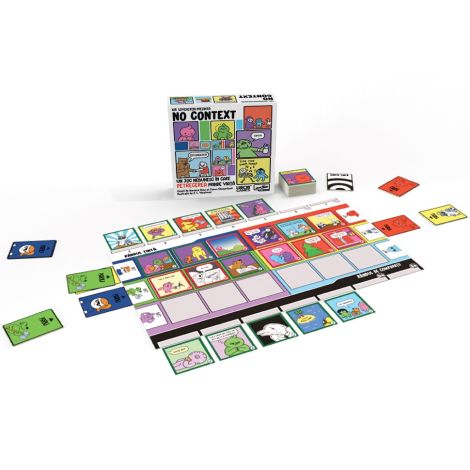 No context este un joc nebunesc in care petrecerea prinde viata. In No Context vei crea asemenea asocieri, folosing diverse imagini de la fabulosul Mr. Lovenstein. Alege cu grija indiciile, ca adversarii sa ghiceasca cartea ta si dedu rapid cartile lor. Cum vei proceda: iti vei asuma un risc, pentru a obtine un punctaj mai mare sau vei merge la sigur, asteptand momentul potrivit pentru a paria? Partea cea mai amuzanta a jocului va fi cand se explica logica ce sta la baza alegerii indiciilor, modul lor de potrivire cu imaginea de ghicit. Contine: 110 carti cu imagini, 42 carti pariu, 7 carti tinta, 1 tabla de joc, 1 regulament in limba romana. Contraindicat copiilor mai mici de 3 ani. Jucaria/produsul poate contine piese mici care se pot inghiti sau inhala existand pericolul de sufocare sau nu este potrivita copiilor mai mici de 3 ani. Nu lasati ambalajele jucariilor/produselor la indemana copiilor. Indepartati orice ambalaj al jucariei/produsului inainte de a da jucaria/produsul copilului. Va rugam sa supravegheati copilul in timp ce se joaca/foloseste acest produs. Pastrati instructiunile si etichetele pentru referinte viitoare. Pastrati jucaria/produsul departe de foc; feriti jucaria/produsul de temperaturi ridicate si umiditate.