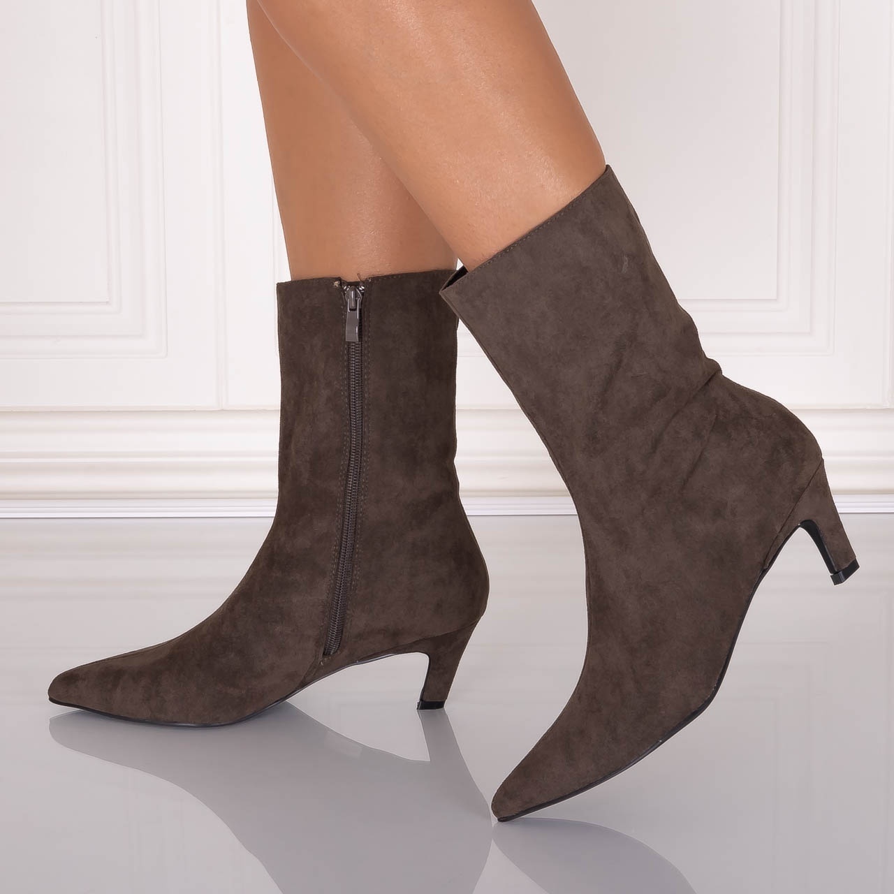 Botine dama Kaki din Piele Ecologica Intoarsa Loretta