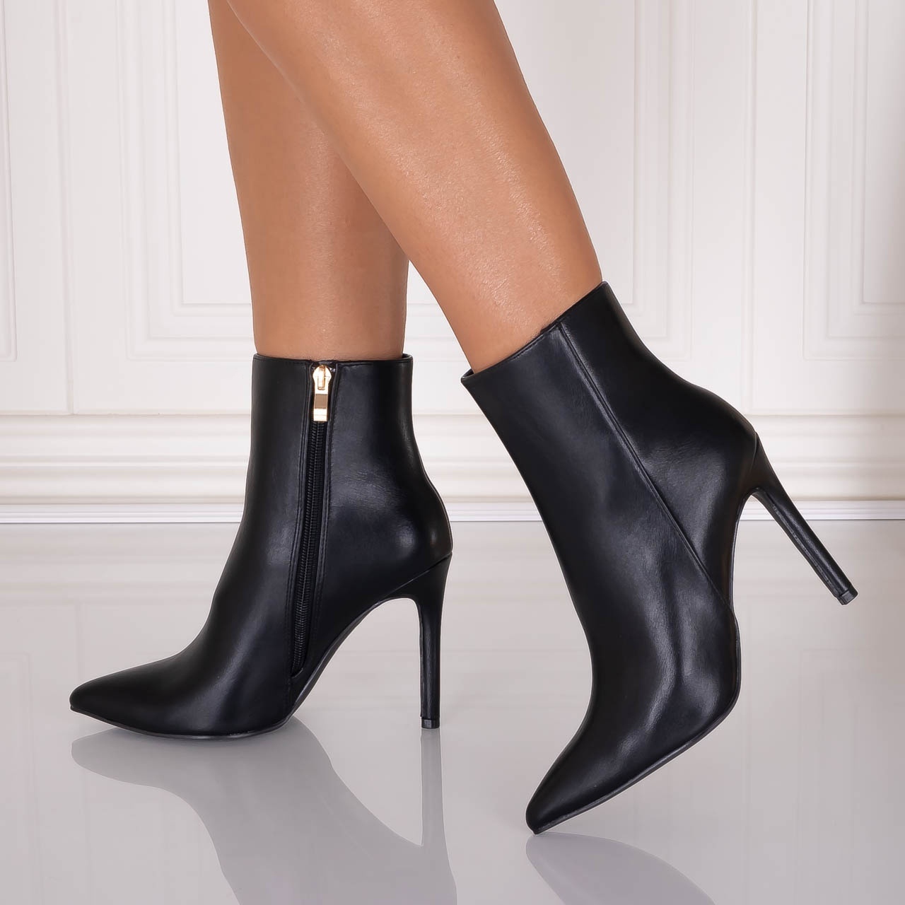 Botine dama Negre din Piele Ecologica Intoarsa Finana