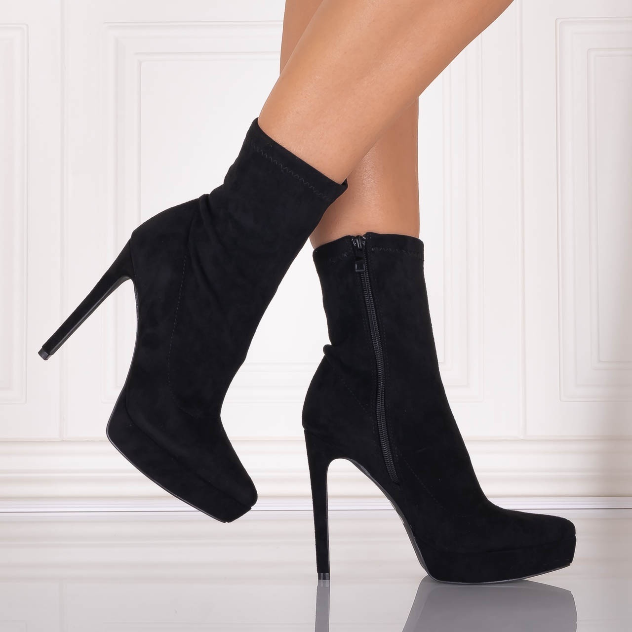 Cizme dama cu toc Negre din Textil/neopren Marilya