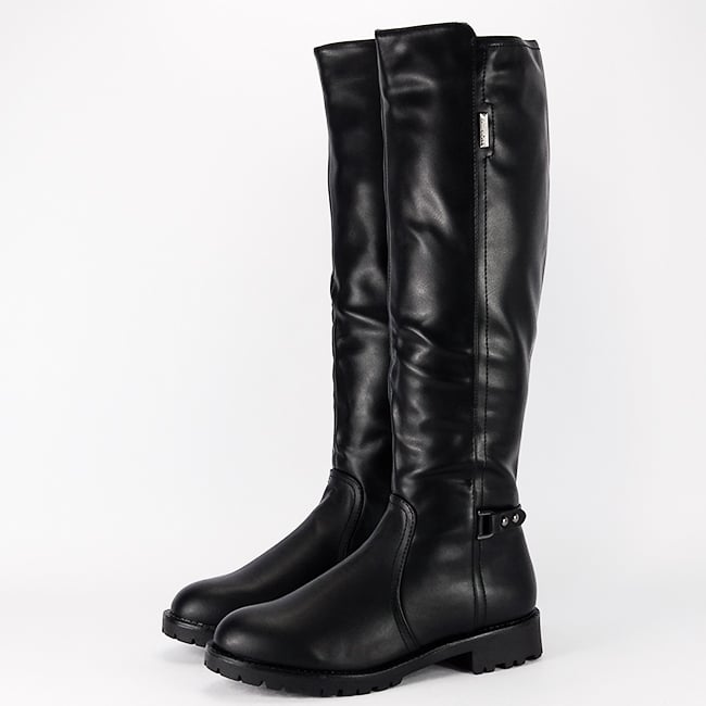 botine elegante din piele ecologica, talpa usor zimtata captusita cu material textil calduros, toc gros, varf rotund, in interior sunt captusite cu material textil calduros, se inchid cu fermoar pe partea lateral-interioara, INALTIMEA TOTALA - 20 cm, INALTIME TOC - 9 cm, NUANTA - negru, STIL - elegant,