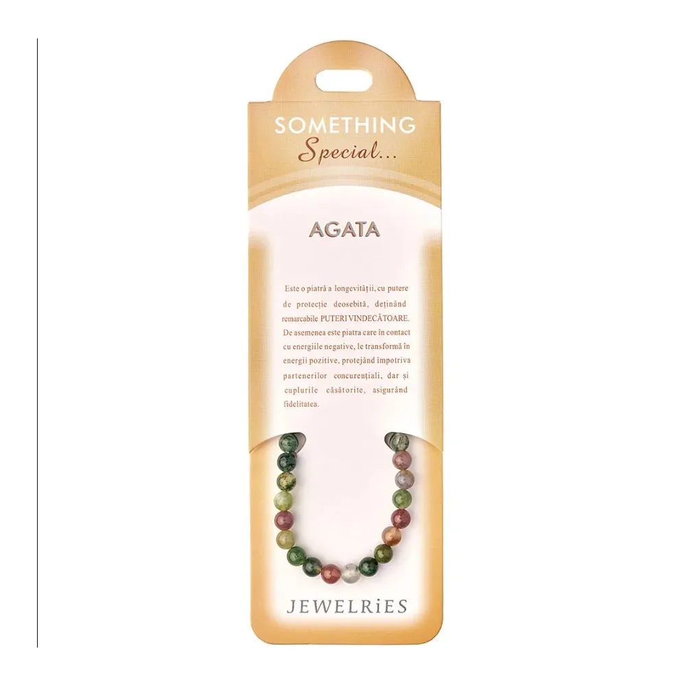 Bratara pietre semipretioase Agata 3 Brand: Something Special Descriere: Brățările din pietre semiprețioase pot avea o serie de beneficii pentru cel care le poarta. Bratarile cu pietre semipretioase au proprietăți de vindecare și pot ajuta la echilibrarea energiilor interioare ale corpului, ceea ce poate duce la o mai bună stare de sănătate și starea de spirit. Brățările din pietre semiprețioase pot ajuta la reducerea stresului și a anxietății, îmbunătățirea somnului, stimularea sistemului imunitar și îmbunătățirea concentrării și clarității mentale. Fiecare piatră are propriile sale proprietăți și beneficii potențiale, în funcție de culoarea, compoziția și straturile sale. În plus, brățările din pietre semiprețioase pot fi purtate ca accesorii și pot fi un mod frumos și elegant de a adăuga un element de stil la ținuta ta. De asemenea, pot fi oferite ca un cadou special pentru a-i arăta cuiva că îți pasă de sănătatea și fericirea lor.