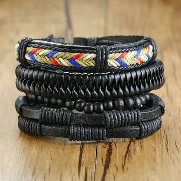 Bratara Vintage, Set multi-curele, Leather effect, Multicolor si Negru Engros