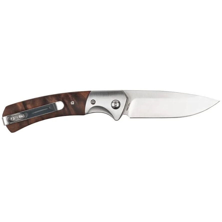 Cutitul pliabil Blaser Classic vine echipat cu o lama lunga de 8 cm, perfecta pentru activitatile in aer liber si de vanatoare. Lama cutitului este fabricata din otel inoxidabil 14C28N, cunoscut pentru ascutirea de lunga durata, rezistenta la coroziune si durabila. Designul include un mecanism de blocare cu suruburi usor de utilizat, care asigura blocarea in siguranta a cutitului atunci cand este deschis, prevenind inchiderea accidentala, chiar si sub o sarcina grea. O clema pentru degete faciliteaza desfacerea lamei. Cutitul vine cu o clema de buzunar si teaca din piele care ii permite sa fie purtat pe curea. Manerul cutitului de vanatoare este din lemn de nuc, pentru o eleganta atemporala. Caracteristici: Lungimea lamei cutitului: 8 cm; Materialul lamei: otel inoxidabil 14C28N; Greutate: 105 g; Functie de blocare in stare deschisa; Material maner: lemn de nuc; Cu clema de buzunar si teaca din piele.