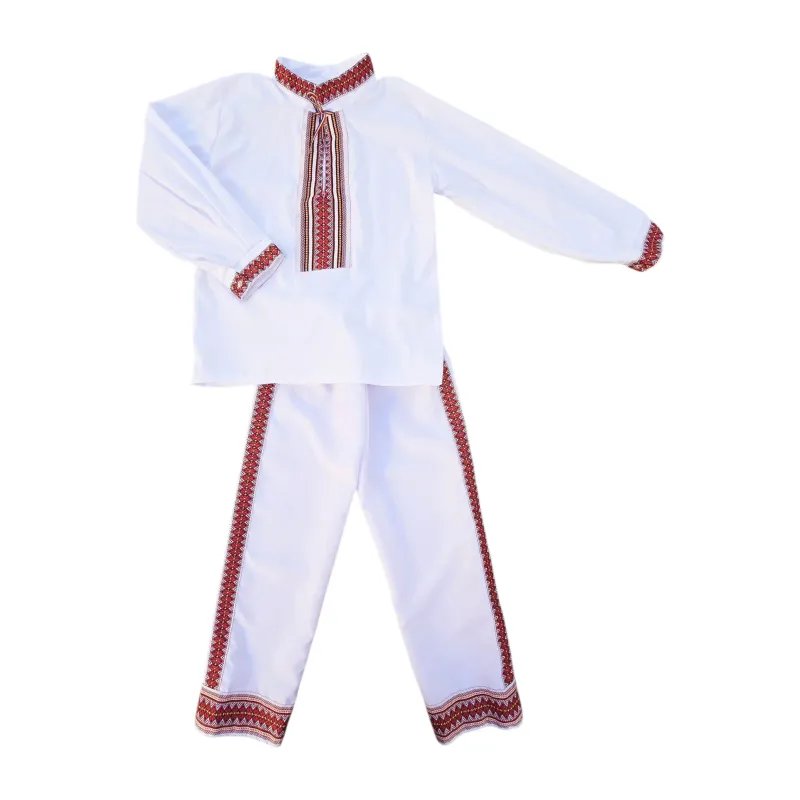 Camasa Tip Ie Traditionala de Baieti Alba cu Motiv Geometric Verde • Material: bumba • Culoare principala: alb • Culori secundare: verde, maro, negru • Motiv geometric • Broderie computerizata • Guler tip tunica • Maneca lunga cu nasturi • Recomandari ingrijire: spalare automata la 30 grade sau spalare manuala Camasi tunica baieti Dimensiune Inovius Varsta Circuferinta bust Lungime Masura 0 0-1 ani 70 cm 40 cm Masura 2 1-2 ani 72 cm 43 cm  Masura 4 3-4 ani 76 cm 46 cm Masura 6 5-6 ani 82 cm 48 cm Masura 8 7-8 ani 86 cm 48 cm Masura 10 9-10 ani 88 cm 48 cm Masura 12 11-12 ani 100 cm 52 cm Masura 14 13-14 ani 104 cm 55 cm Masura 16 15-16 ani 120 cm 60 cm