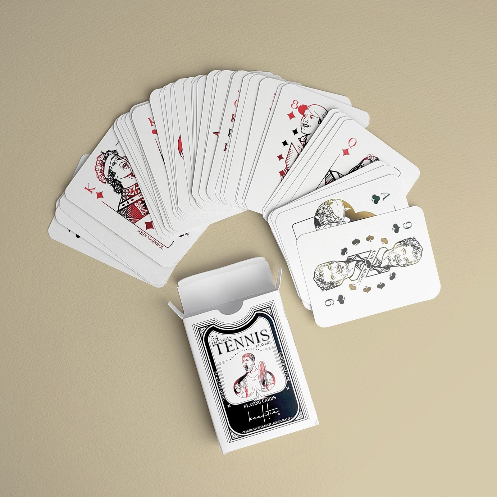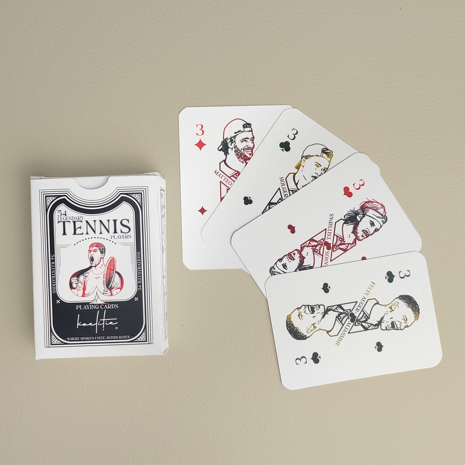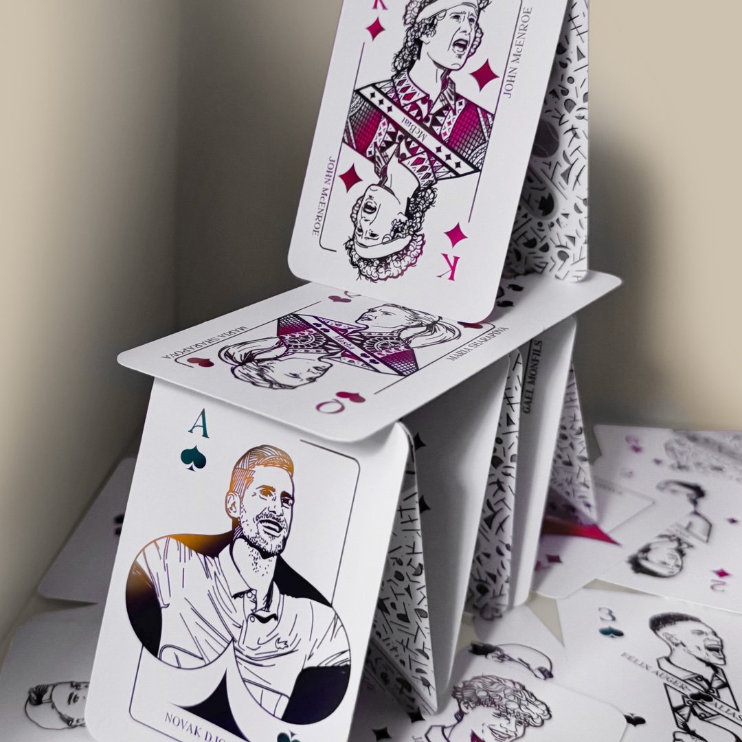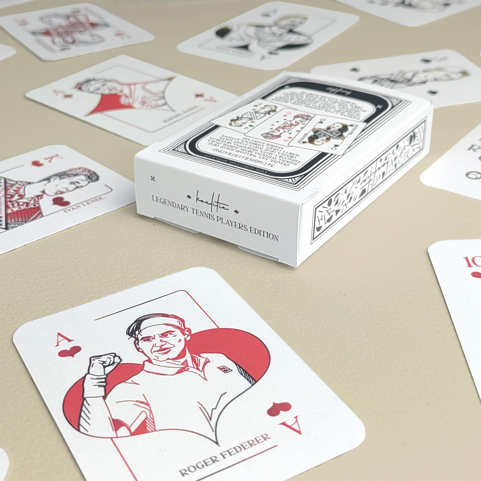 Carti de joc - Jucatori legendari din tenisPachetul de Carti de Joc „Tenis – Jucatori Legendari” este ilustrat si produs de noi, in atelierul koalitia. Am ilustrat pentru acest pachet, 54 de jucatori de tenis care au scris istorie in trecut, dar si jucatori si jucatoare de tenis care concureaza in prezent in ATP sau WTA!Suntem romani, si iubim valorile pe care poporul nostru le are inclusiv in sport, asa ca am surprins momente de glorie ale Simonei Halep. Nu am uitat de Ilie Nastase, Sorana Cirstea, Bianca Andreescu si Emma Raducanu!Perfecte pentru sesiuni indelungate de joc cu prietenii, cartile de joc cu tenis vor aprinde cu subiecte de conversatie intre voi!Lista jucatorilor de tenis ilustrati in acest pachet de carti de joc tenis.Cele 54 carti de joc, adica si cei 2 Jokeri, sunt fiecare ilustrate digital, manual, de noi, prezentand urmatorii jucatori si jucatoare de tenis:(WTA) Swiatek, Serena Williams, Venus Williams, Halep, Graf, Badosa, Svitolina, Henin, Jabeur, Naomi Osaka, Sabalenka. Seles, Sharapova, Muguruza, Cirstea, Barty, Evert, Coco Gauff, Schett, Court, Andreescu, Kvitova, Kerber, Raducanu.(ATP) Novak Djokovic, Roger Federer, Rafael Nadal, Laver, McEnroe, Lendl, Borg, Sampras, Roddick, Kyrgios, Ivanisevic. Monfils, Aliassime, Hewitt, Medvedev, Zverev, Berrettini, Rune, Becker, Ashe, Alcaraz, Ruud, Wawrinka, Thiem, Tsitsipas, Wilander, Sinner, Murray.Cele doua carti de Joker ii ilustreaza pe Mansour Bahrami si Ilie Nastase.Acest pachet de carti de joc cu tenis este creat cu atentie la detalii, fiind la randul nostru fani inraiti ai sportului.De ce sunt rezistente aceste carti de joc?In ce priveste durabilitatea acestui pachet, venim cu o multime de masuri. Mai intai, cartile sunt realizate din carton tratat cu un laminat rezistent, de textura mata si catifelata. Ceea ce le face si placute la atingere, dar si potrivite pentru sesiuni indelungate de joc cu prietenii!Suplimentar, oferim huse protective de piele 100% naturala, create manual tot in atelierul nostru. In acest fel poti sa iei cartile de joc cu tine oriunde, fara teama ca vei uza pachetul cartilor!Create 100% fara A.I. si fabricate in totalitate in Romania.
