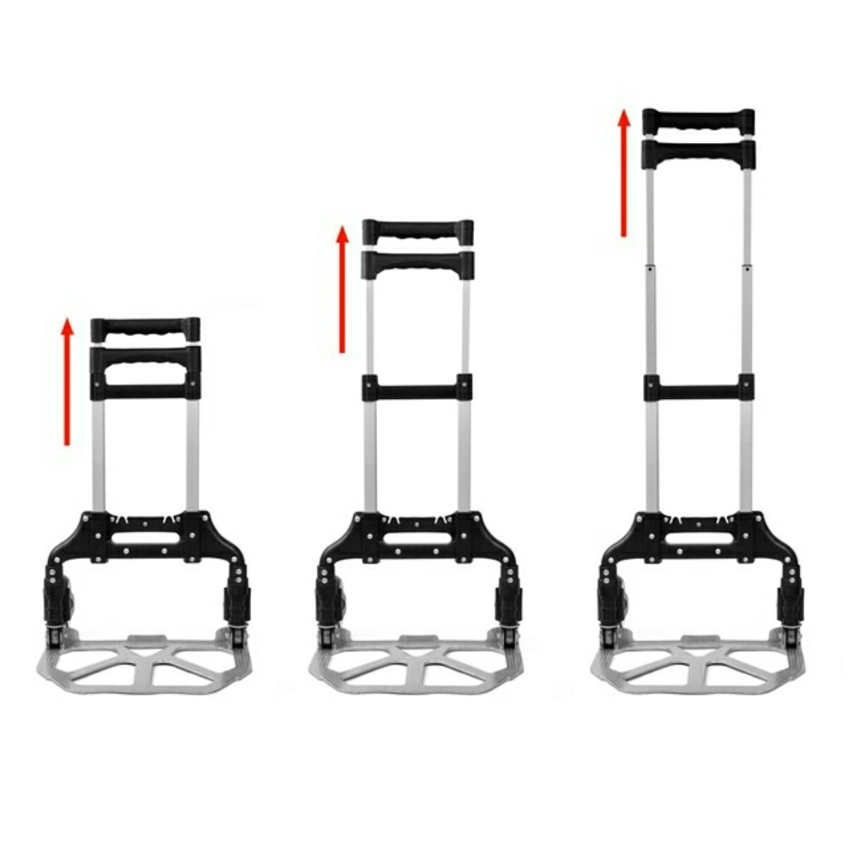 Carucior pliabil multifunctional din aluminiu Este foarte util pentru transport material: aluminiu ideal pentru un magazin, depozit, acasa, la piata sau la birou cantareste doar 2.8 kg poate duce o greutate de pana la 70 kg dimensiuni cand este deschis: 101x 39 x 41 cm dimensiuni cand este pliat: 65 x 39 x 5.5 cm dimensiunea suprafetei de carat (piciorul plat): 0.15 x 38.5 x 28 cm