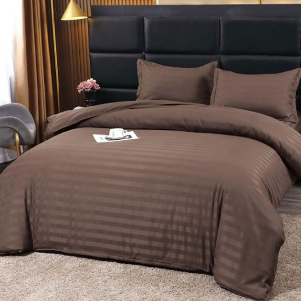 SET CEARCEAF CU ELASTIC DIN BUMBAC SATINAT + 2 FEȚE DE PERNĂ Setul format din cearceaf cu elastic și 2 fețe de pernă reprezintă alegerea ideală, dacă ești în căutarea unui set de lenjerii care să stea fix pe patul tău matrimonial. Cele 3 piese sunt confecționate din bumbac satinat de calitate superioară, foarte plăcut la atingere. Conțin un amestec optim de bumbac și microfibră, iar datorită jocului de culori deosebit, vor aduce un plus de eleganță și rafinament dormitorului tău!COMPOZIȚIA LENJERIEI: Compoziția lenjeriei este de 60% bumbac și 40% microfibră. Materialul este de calitate superioară, foarte rezistent și ușor de întreținut. CONȚINUTUL LENJERIEI: Acest set conține 3 piese: 1 cearceaf de pat cu elastic potrivit pentru saltea cu înălțime de până la 25 cm (dimensiuni: 160x200 cm +/- 5cm) și 2 fețe de pernă (dimensiuni: 52x80 cm +/- 5cm).ÎNTREȚINEREA LENJERIEI: Lenjeria se spală la max. 40°C și se calcă la max. 130°C. Pentru rezistență sporită, nu recomandăm spălarea cu înălbitori chimici. NOTĂ: Pozele afișate sunt cu titlu de prezentare și au scop comercial. Pot exista mici diferențe de nuanță și de încadrare a imprimeului. Dimensiunile pot varia cu ±5cm.