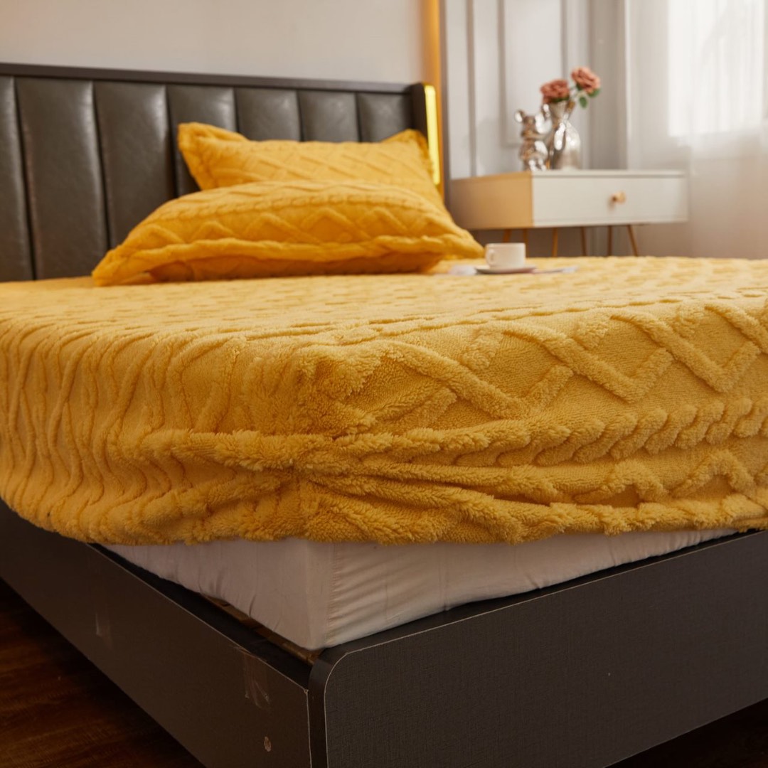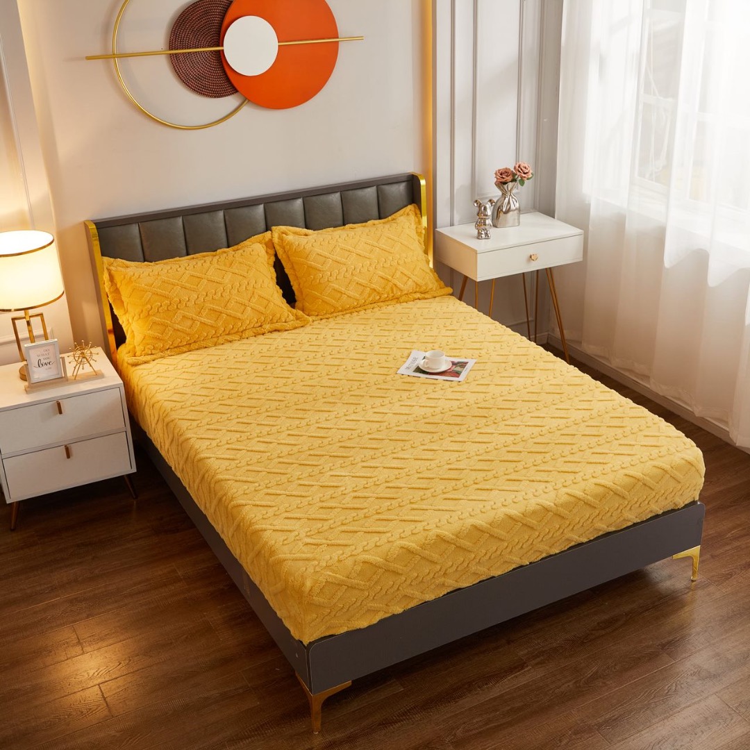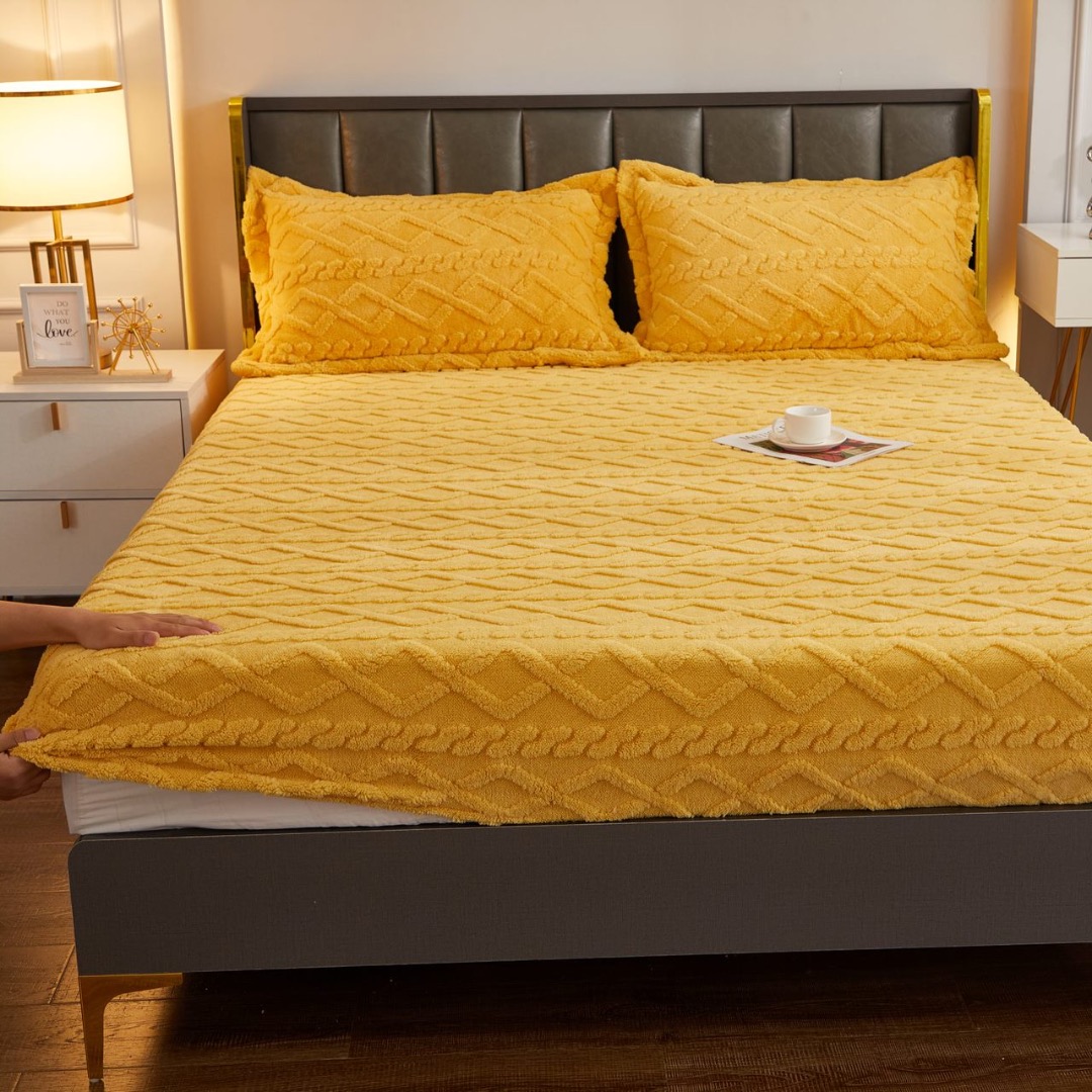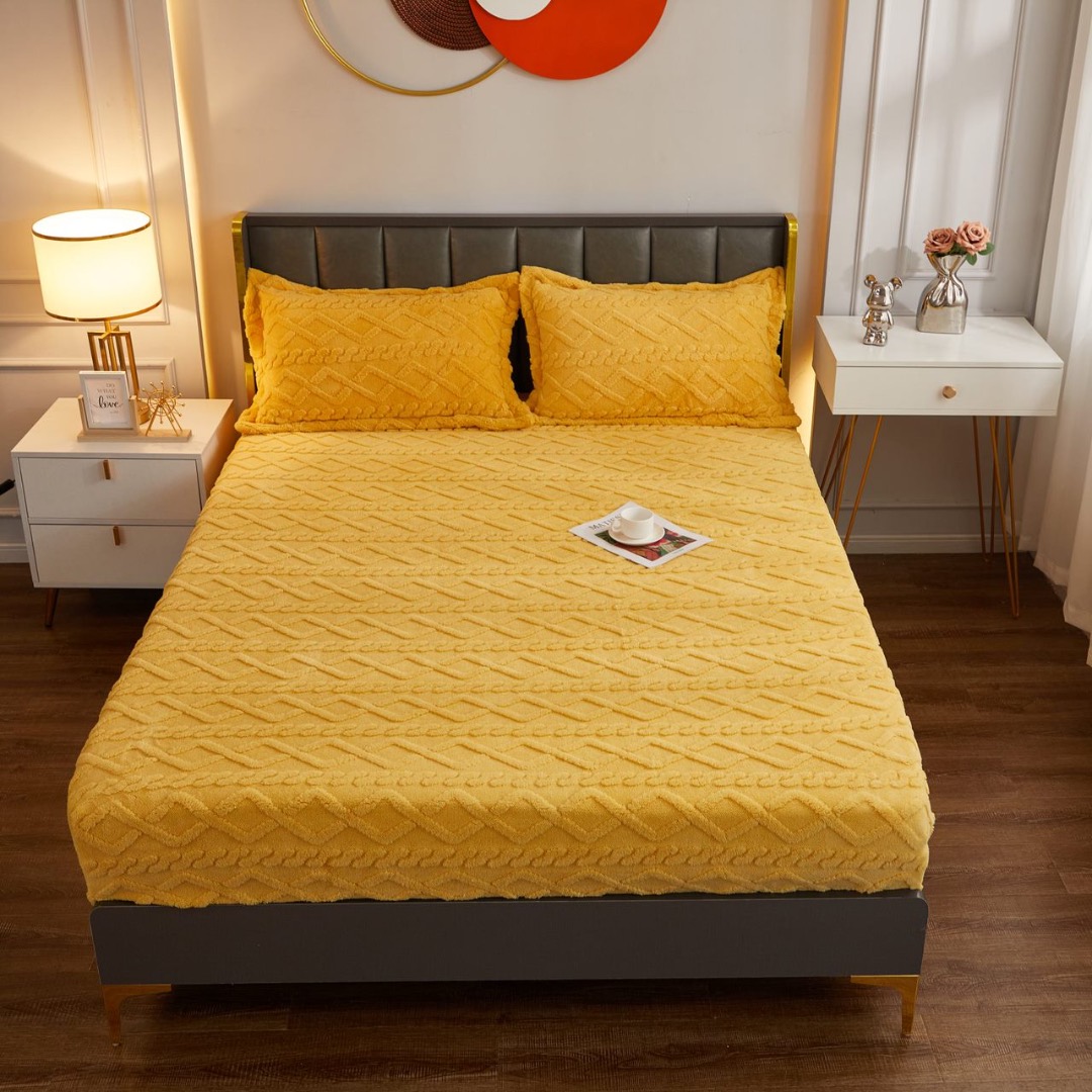 Cearsaf cu Elastic Cocolino 180x200cm si 2 fete de perna 50x70cm, Gros si Pufos, Galben