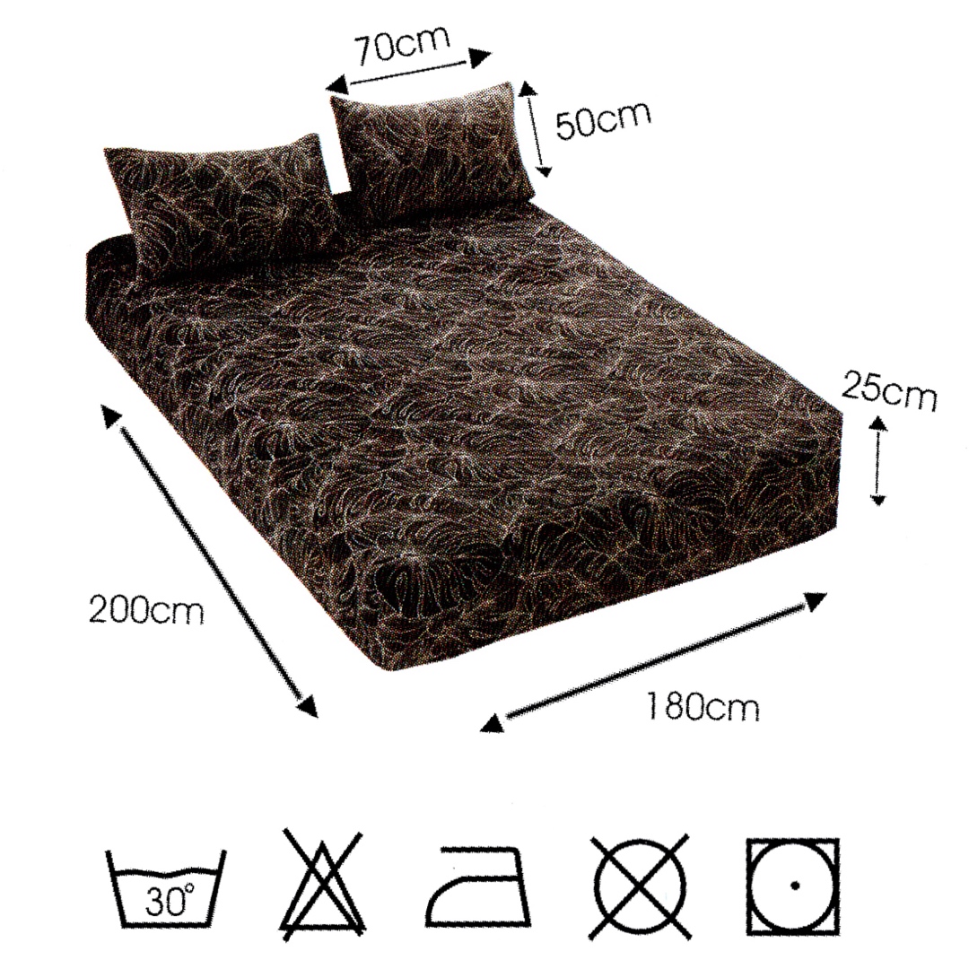 Cearsaf cu Elastic Cocolino 180x200cm si 2 fete de perna 50x70cm, Negru, Alb, Frunze