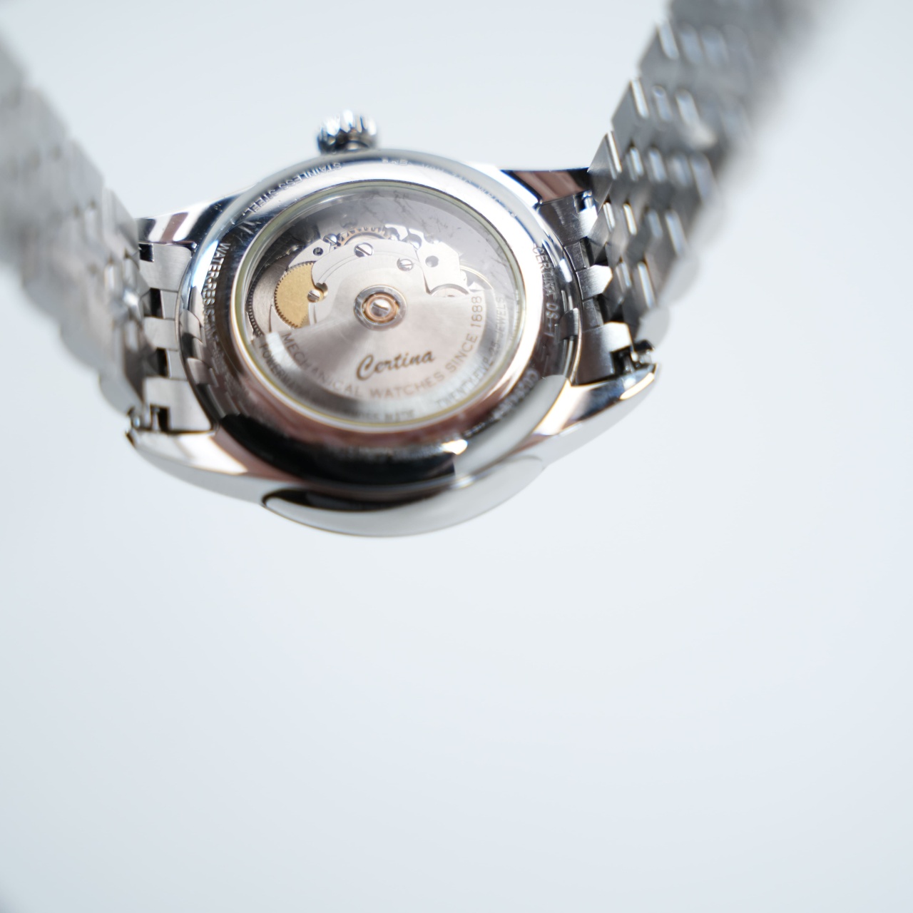 Tip afisaj: Analog Tip mecanism: Automatic Material carcasa: Otel inoxidabil Material geam: Cristal safir Acuratete aproximativ +3 sec,zi