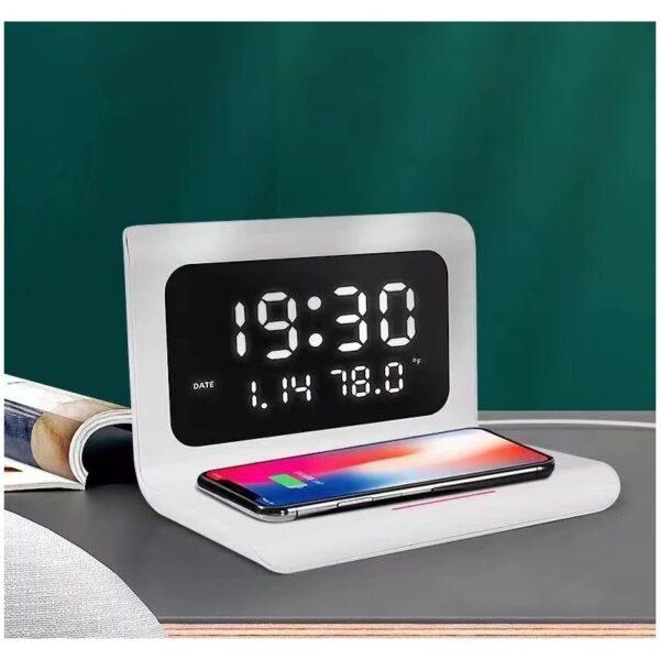 Ceas de birou cu incarcator Wireless, Alb Ceas cu afisaj digital si alarma, cu statie de incarcat wireless si incarcare rapida.Incarcare wireless este compatibila pentru telefoanele care au aceasta functie. Statia de incarcare inovatoare, DigitalStation, este un dispozitiv modern care ofera 4 functii intr-un singur dispozitiv: incarcare wireless rapida a telefonului, ceas cu alarma, calendar si termometru pentru masurarea temperaturii din camera. Curent de intrare: 5V - 2A / 9V - 2A Curent de iesire in incarcare: 7,5W / 10W / 5W Statie de incarcare multifunctionala Incarcare rapida si eficienta a smartphone-ului Ecran LCD si design minimalist modern Suprafata antiderapanta pentru prevenirea caderilor Protectie la supraincalzire Noptiera dumneavoastra mereu in ordine Mic si practic pentru calatorii Tineti mereu noptiera ordonata - Combinatia perfecta de 4 functii intr-un singur dispozitiv, economiseste spatiu pe noptiera si o mentine mereu in ordine. Statia de incarcare multifunctionala, DigitalStation, are un design minimalist, este placuta la atingere si se potriveste perfect oricarui interior. Incarcare wireless pentru telefoane - Aceasta statie inovatoare poate incarca toate telefoanele care prezinta functia de incarcare wireless: Samsung, Apple, Xiaomi, LG, Sony, altele. Ceas cu alarma si calendar pe ecran LCD - Aveti probleme cu trezitul dimineata? Cu acest ceas cu alarma nu veti mai intarzia niciodata la munca! Alarma suna timp de 3 minute inainte de a se opri automat, iar dupa 5 minute va suna din nou, acest proces repetandu-se de 2 ori.