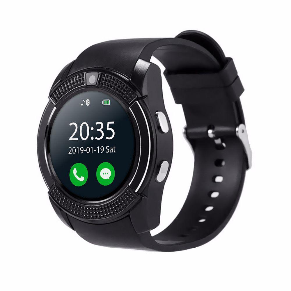 Ceas Smartwatch V8 cu functie apelare, SMS, camera, Bluetooth, Android, Negru Culoare: Negru Dimensiuni: 53 x 44.8 x 12.95 mm Ecran: 1.22″ ecran tactil IPS HD (240 x 240 px) Sim card: Micro SIM Chipset: MTK6261D Baterie: Lithium 280 mAh, 72h timp standby Camera: 0.3 MP Sistem de operare: Android Memorie interna: ROM+RAM: 32M+32M Slot Card: Da Bluetooth: 3.0 Frecventa GSM: 850/900/1800/1900 MHz Accesorii: Cablu USB si manual de utilizare Descrierea functiilor: 1. Functie telefon(apelare si primire apeluri) 2. Control muzica 3. Sedentary reminder 4. Accelerometru 3D 5. Monitorizare somn 6. Pedometru – poate inregistra pasii 7. Remote camera 8. Camera 9. Anti-lost Specificatii produs: Pentru Barbati Stil Casual Sistem de operare compatibil Android Sistem de operare Android Tip SIM Micro SIM Material curea/bratara Silicon Culoare curea/bratara Negru Display Digital Dimensiune display 1.22 inch Stil display Rotund Autonomie 72 de ore Dimensiuni ceas smart V8 4.52 inch x 1.77 inch x 3.54 inch = 11.5 cm x 5 cm x 9 cm